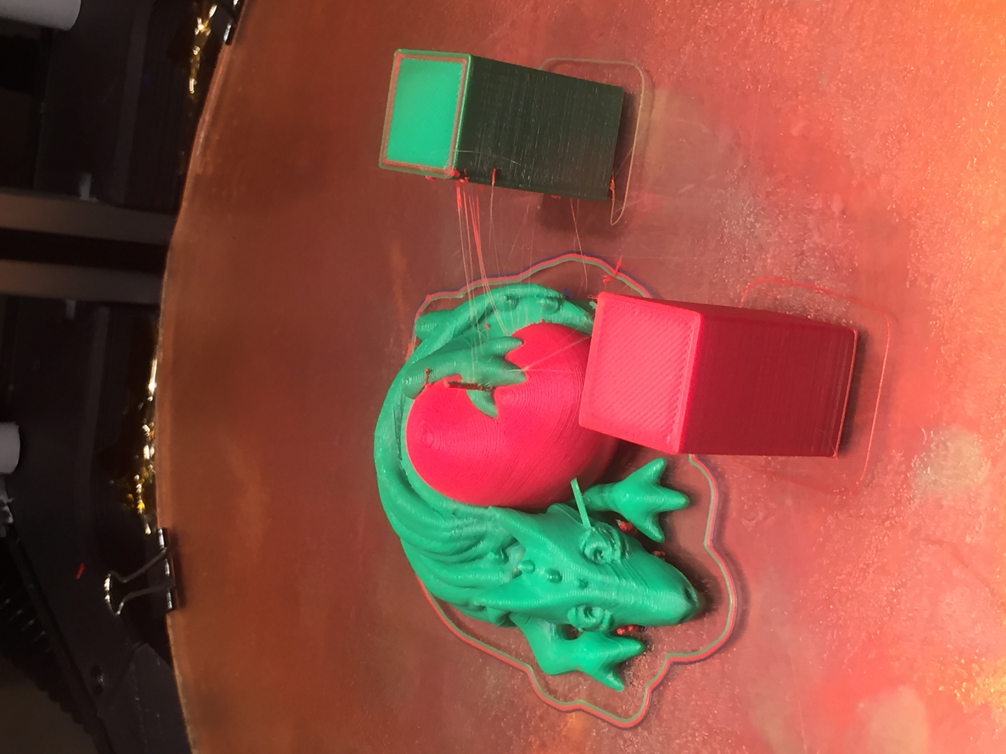 This time I added to "wipe towers" to clear the Diamond of filament before printing the dragon or heart.