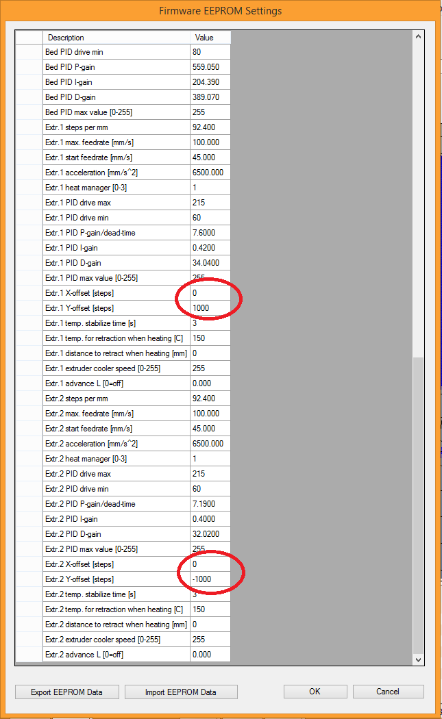 i set the offset in eeprom, if you align the nozzles with the y-axis there is no x offset.