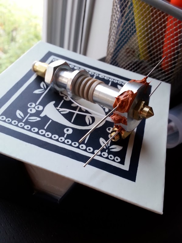 Also, you can't tell from this photo, the hot end hangs down lower then the nuts. So access with an open wrench is at a steep angle that does not allow me to get on the nut and hold it.