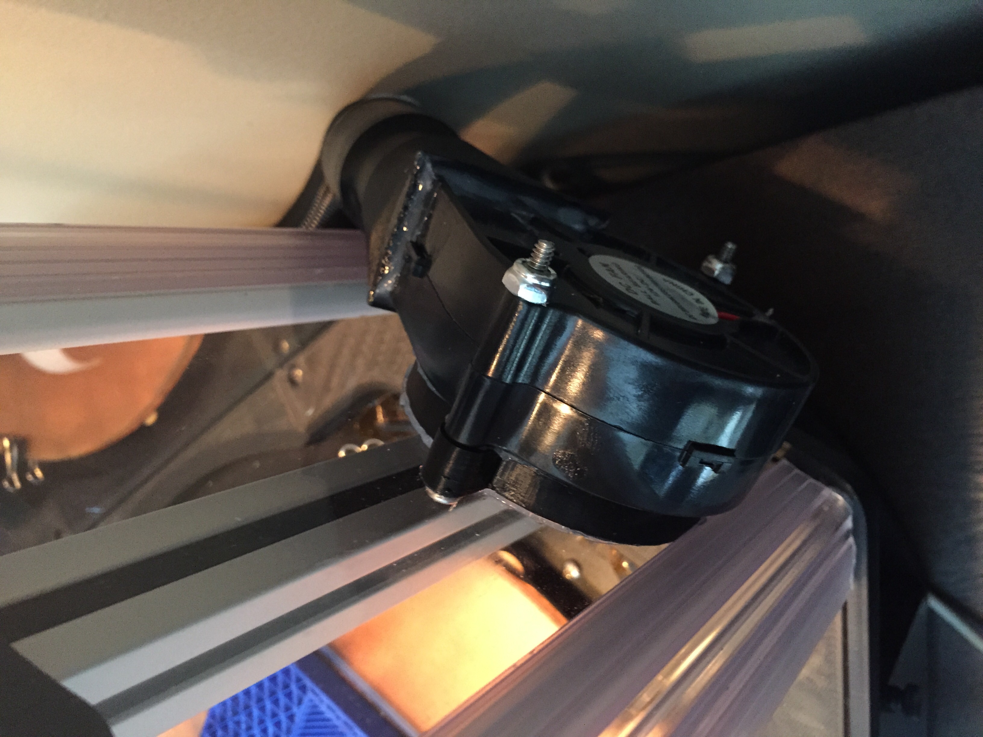 It has been an awesome addition and does a great job venting the fumes. If I ever need to replace the fan I would likely go with a slightly higher CFM and consider adding a 12V rheostat.