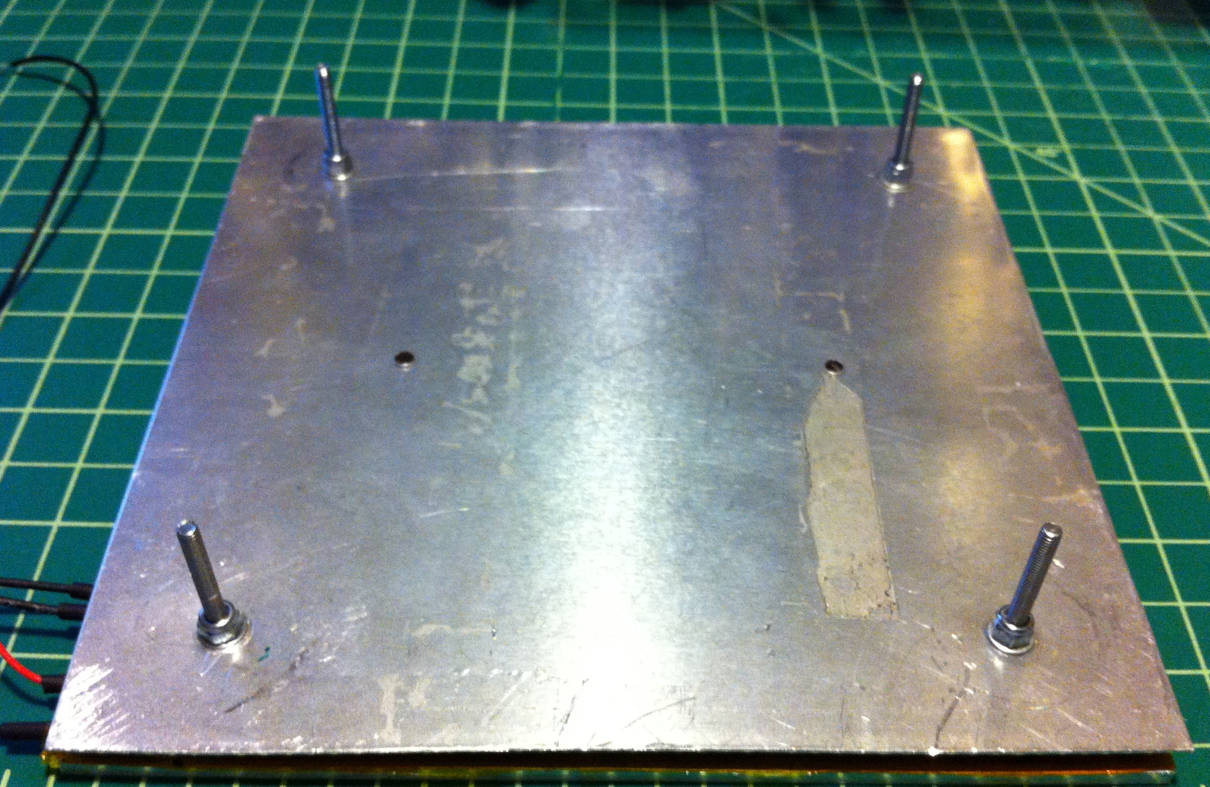 Note: This is necessary only if your thermistor/leads protrude too far as mine did - Place second aluminum sheet on top of birch plywood and build plate