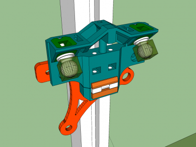 This one will need to be printed with support. In the future, I plan to do a version that reaches out towards the center of the printer, and puts the pulley there, so that the counterweight can take weight directly off the flying extruder platform. For now, the weight is taken off at the carriage. If you have cats, you better figure out some way to keep them away! I've had to take measures to keep mine away from this because they LOVE to swat at the weights and bite the fishing line, especially when the printer is in motion.