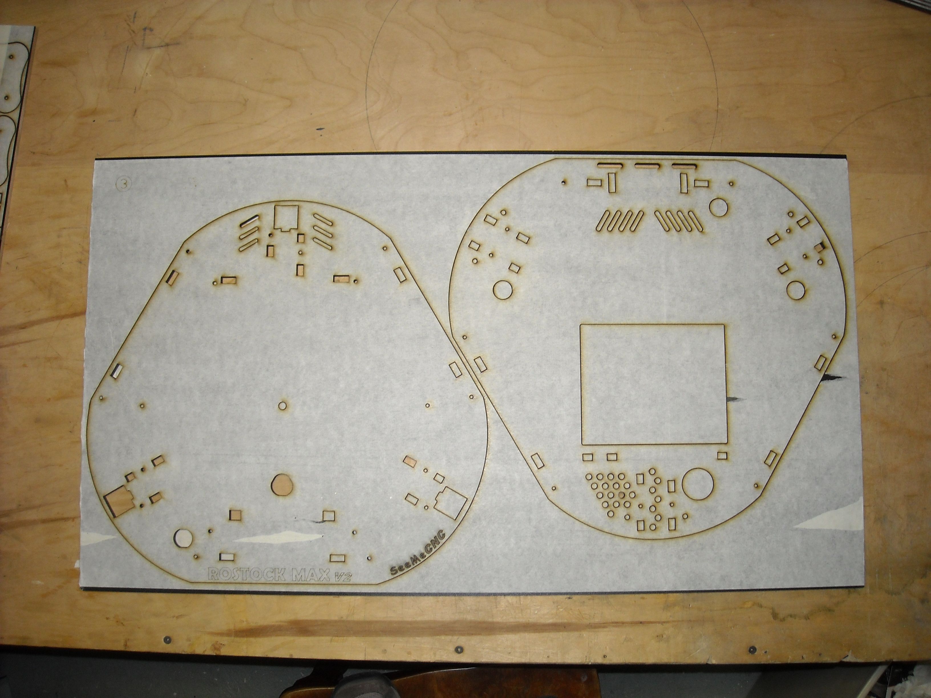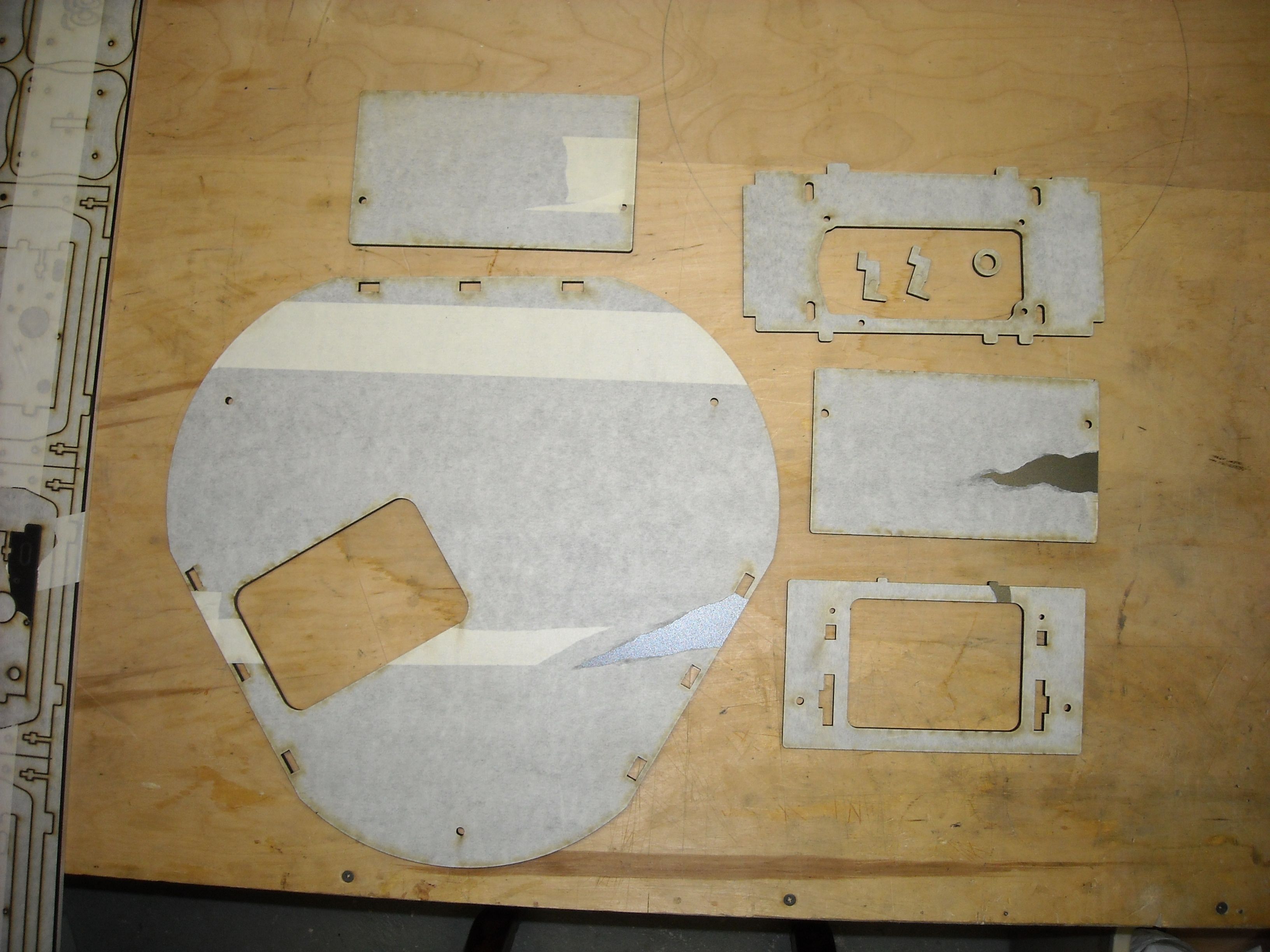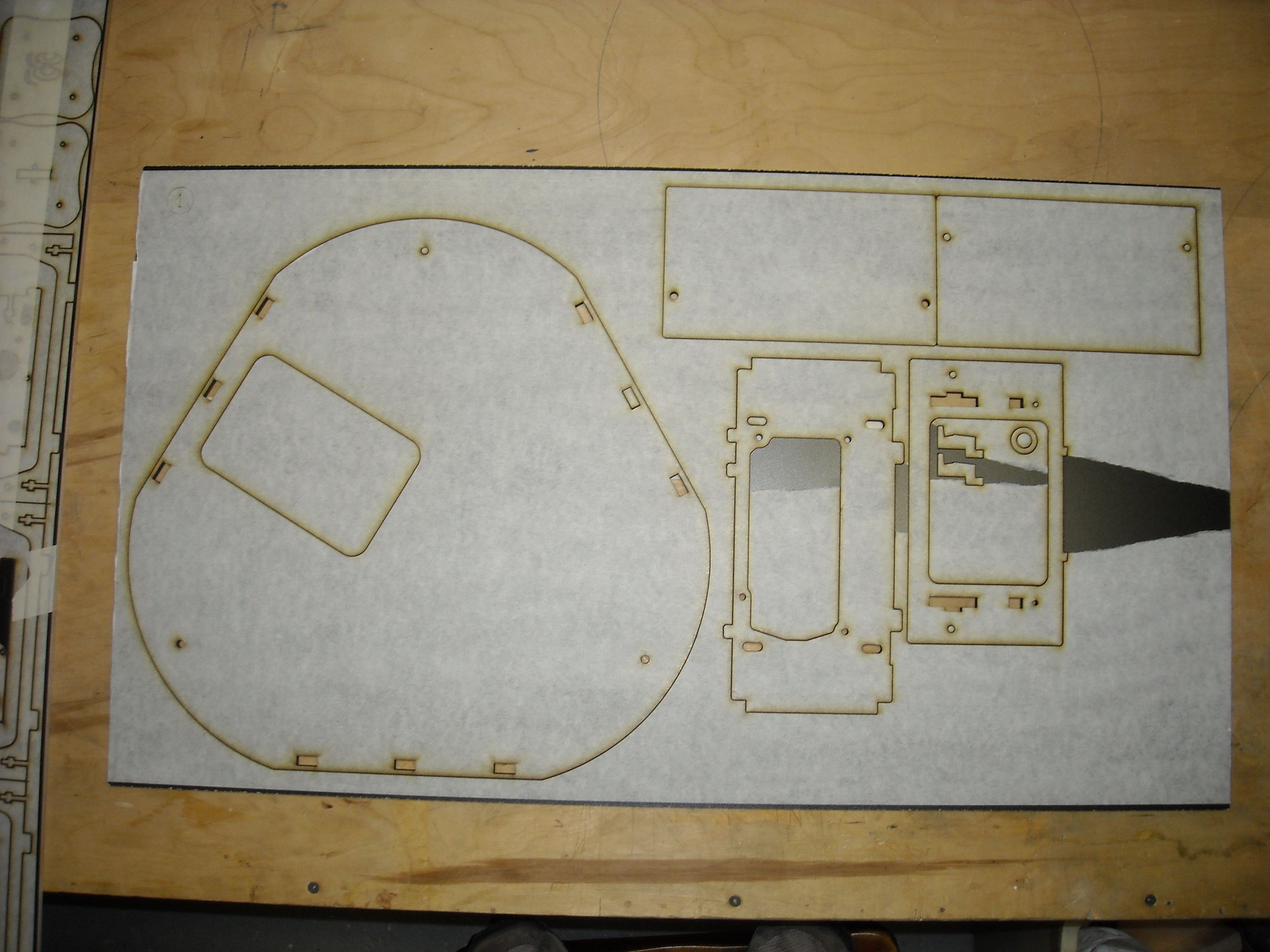 On the fourth sheet, I wasn't able to separate one piece, as the laser hadn't even penetrated the bottom laminate sheet. The laser kerf is too narrow for my #11 blade to get through from the top, and I'd be completely winging it if I tried to cut from the bottom. I'll be asking SMC for a replacement.