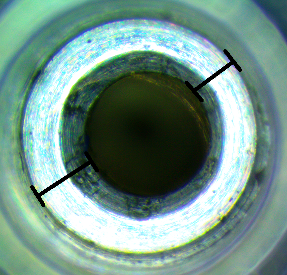 and the 1.8mm hole (filament path) in the heat break was off centre by 0.2mm to the Bowden tube receptacle bore as well as the heat break threads that go into the Heater block(post remediation pic)...