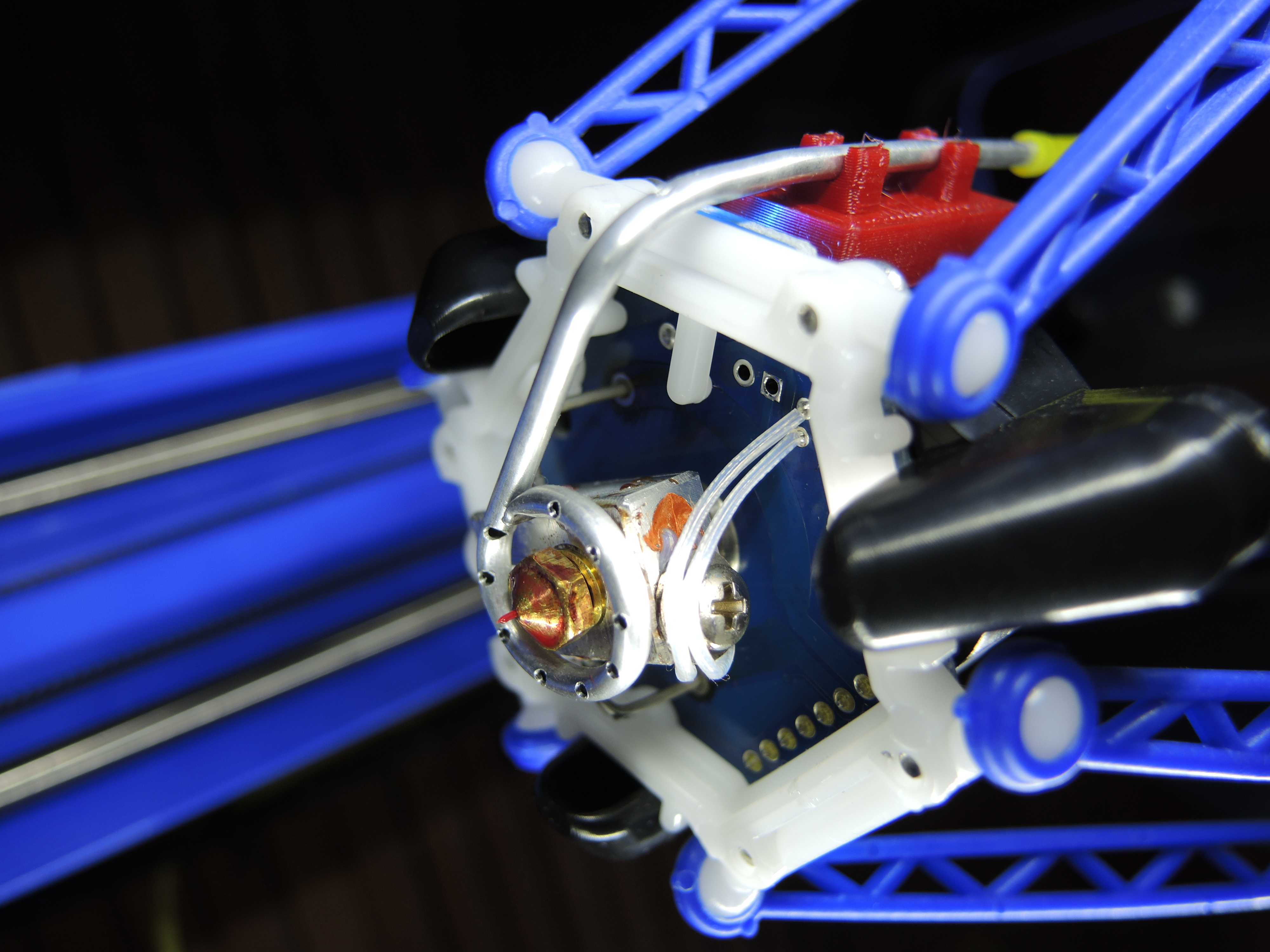 I tried a few zip ties and kapton tape but when the effector plate moved around the build area, the tube would angle (i attached it to the wiring, probably not the best idea)