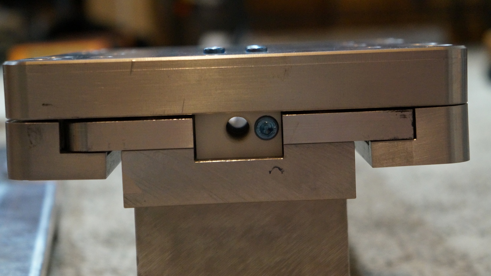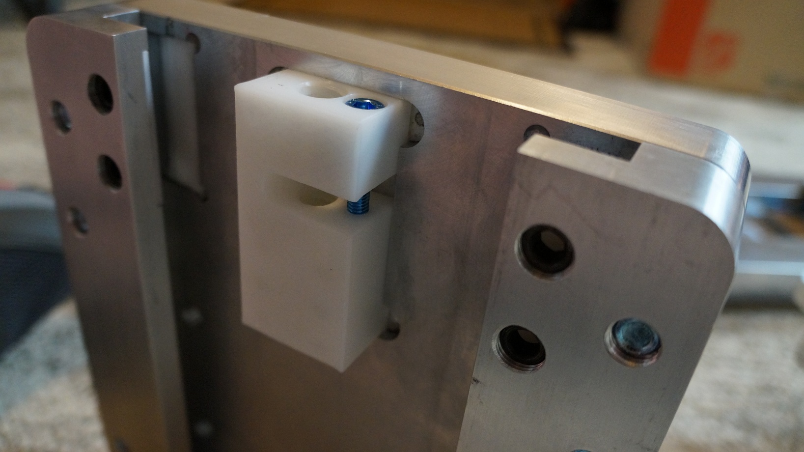 I improved the side-load rigidity by putting steel shims in the gap between the side plates and the acetal wear pads, so the steel shims distribute the set screw force over a larger area.