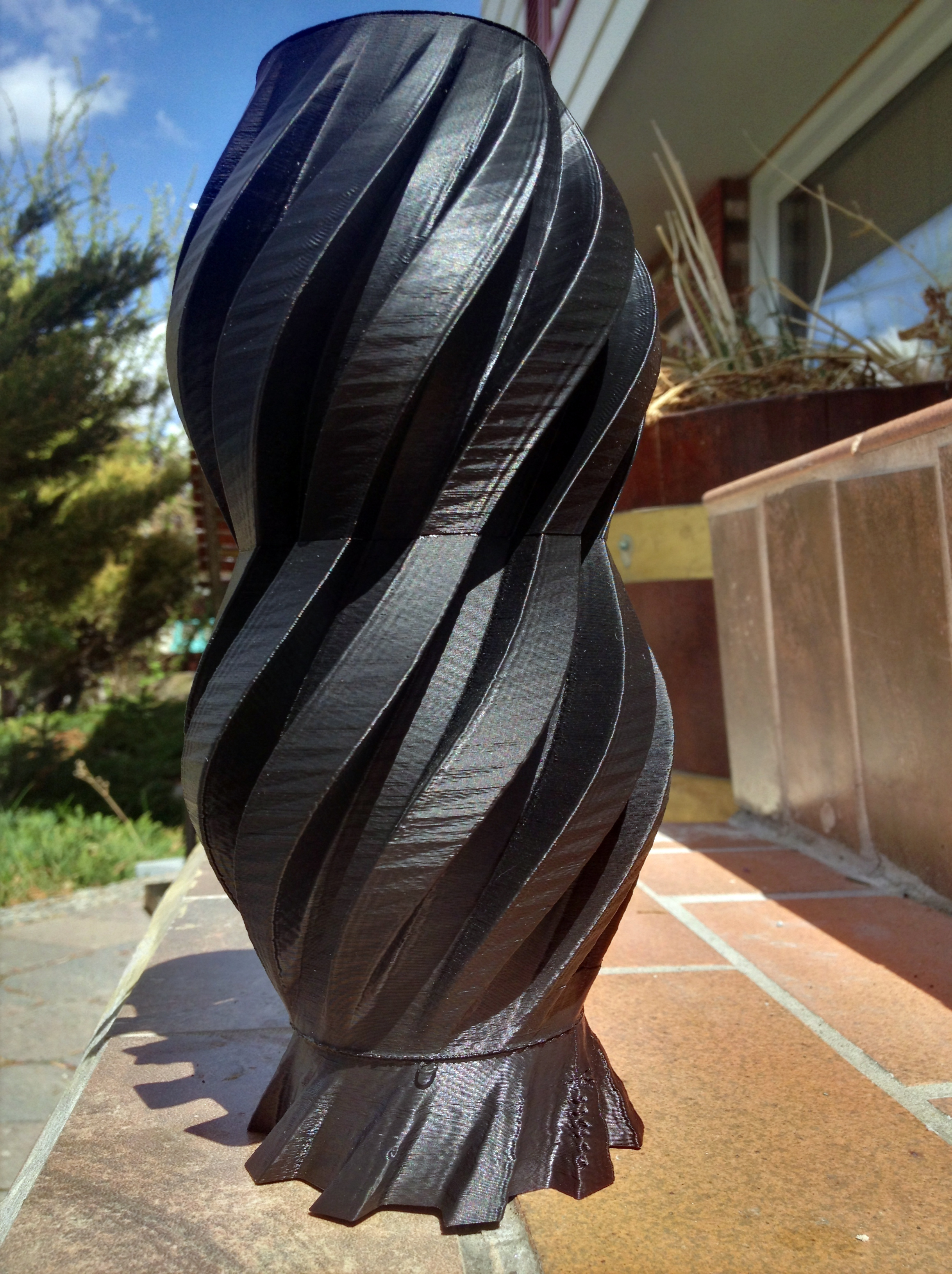 The vase is actually not one piece, it is made of two cancelled prints and they just happen to fit together nicely. (cat unplugged my cable for the red one and I messed up the clear one. Clear is PLA, red is ABS)