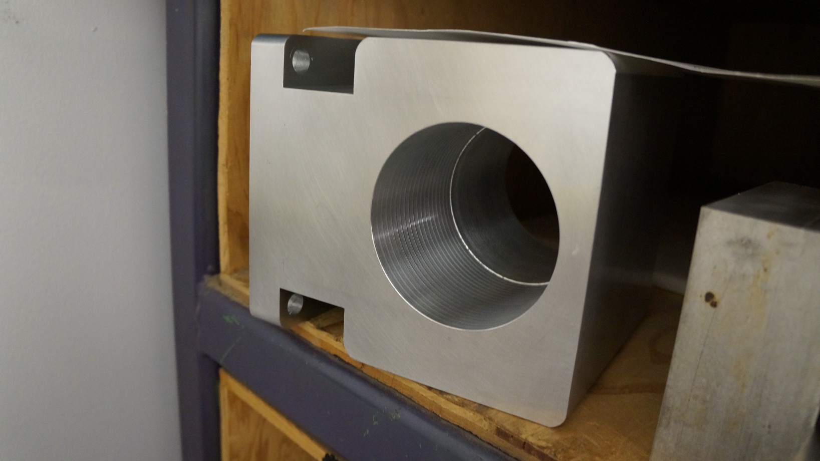 There was no boring head to use for a 3.94" bore. The tool used in the last post to plunge the through hole was just a fly cutter in a big ER40 tool holder. The purpose of probing with the VMC was to align the front bearing pocket to the through hole; the part will be flipped and aligned again for the back pocket. This is the only good way to do it without very specialized tools.