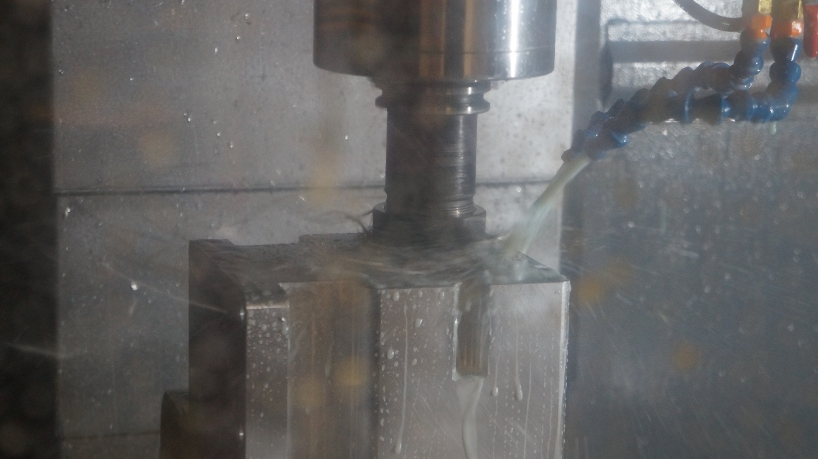 There was no boring head to use for a 3.94" bore. The tool used in the last post to plunge the through hole was just a fly cutter in a big ER40 tool holder. The purpose of probing with the VMC was to align the front bearing pocket to the through hole; the part will be flipped and aligned again for the back pocket. This is the only good way to do it without very specialized tools.