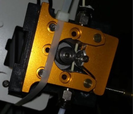 After replacing the hotend, the old extruder worked much better. But it would still stall out for no apparent reason (although I now suspect that my volume problem was the root cause). I got *really* tired of having to nudge the filament along from time to time as it went, and so I got medieval with it. :)