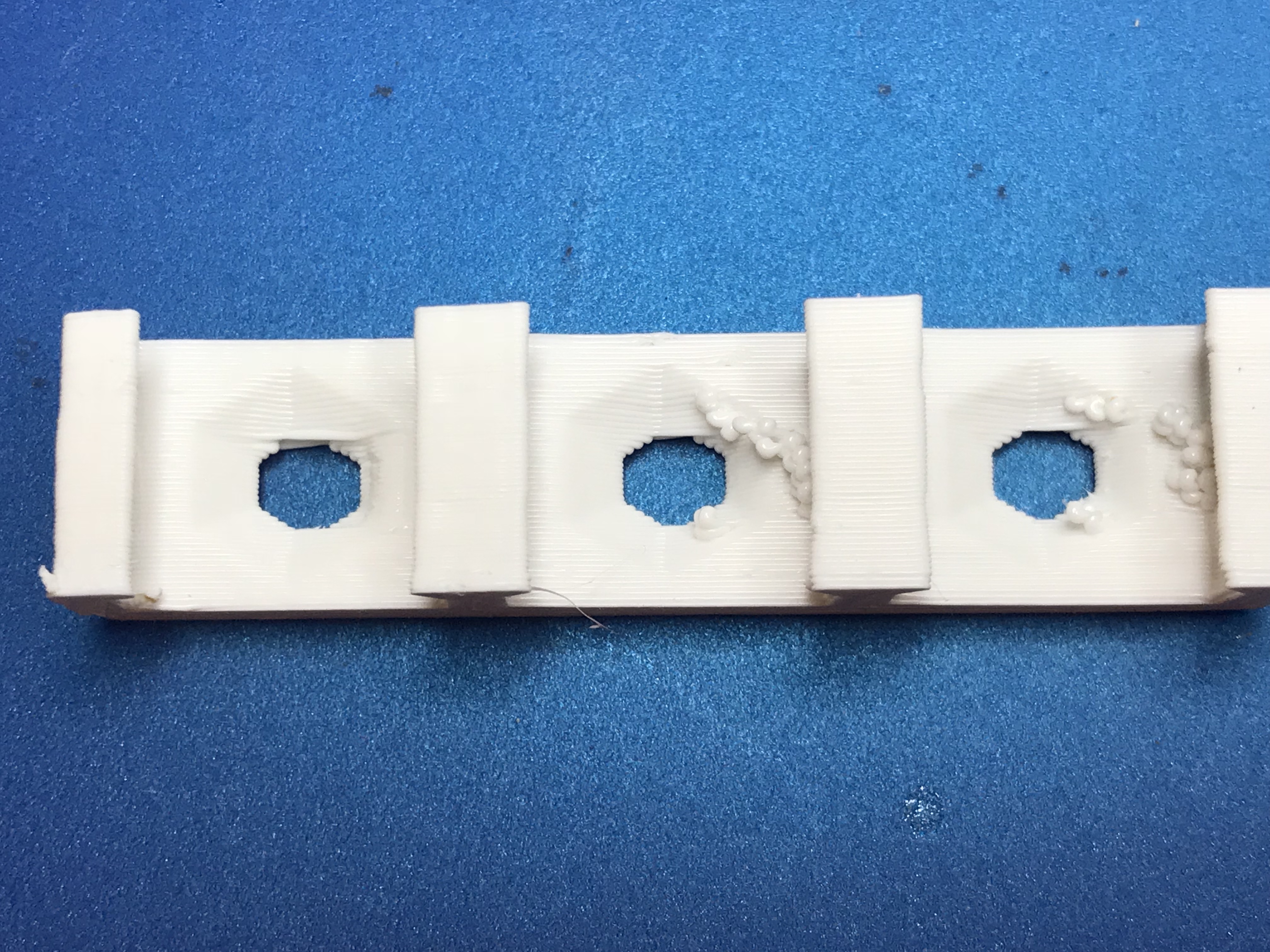 The real problem is the skewing. The test square from my previous posts had more than 1mm +/- error in the X and Y axes. And sharp angles come out with curvy irregularities. I'm pretty sure that's contributing to the beading and layer misalignments in these other pics: