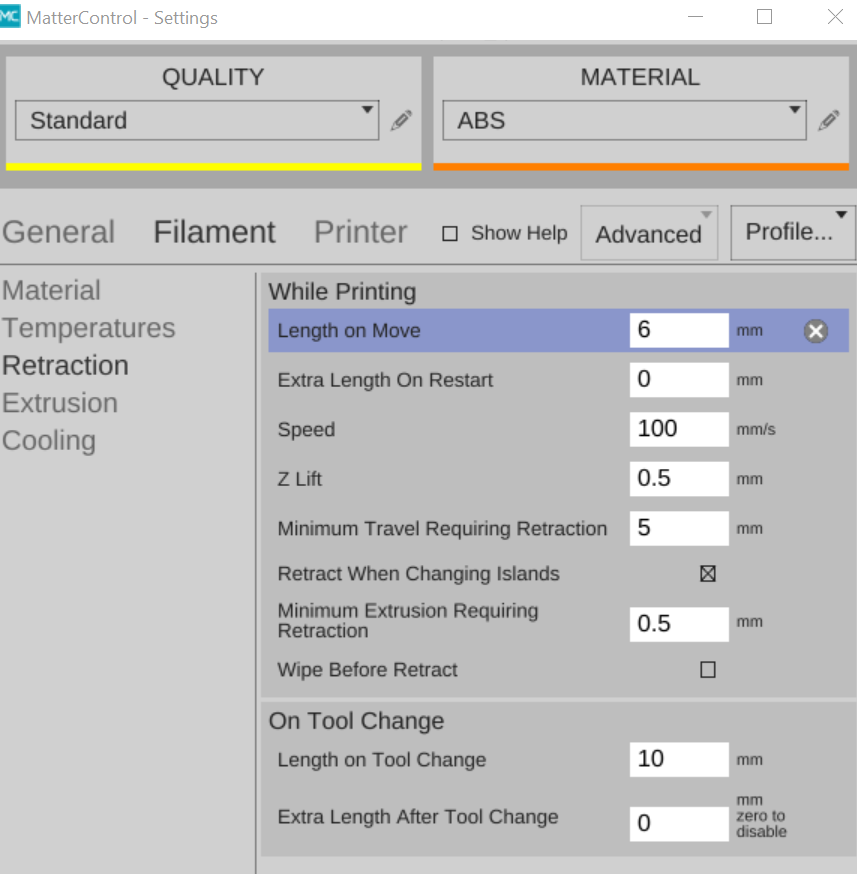 I'd turn the retract length down to 2mm or so, and play with retract speeds down around 10-25mm/s