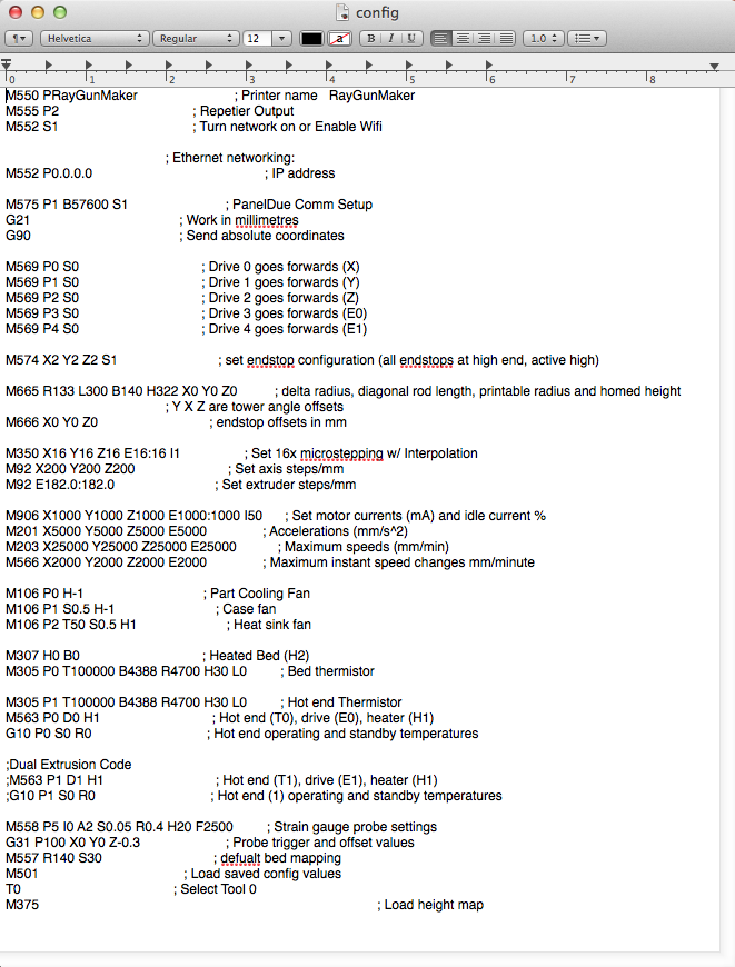 And Changed the Ethernet settings in the SD/macros/g-code.g file - to work with my Mac (MacPro 3.1 Mavericks)
