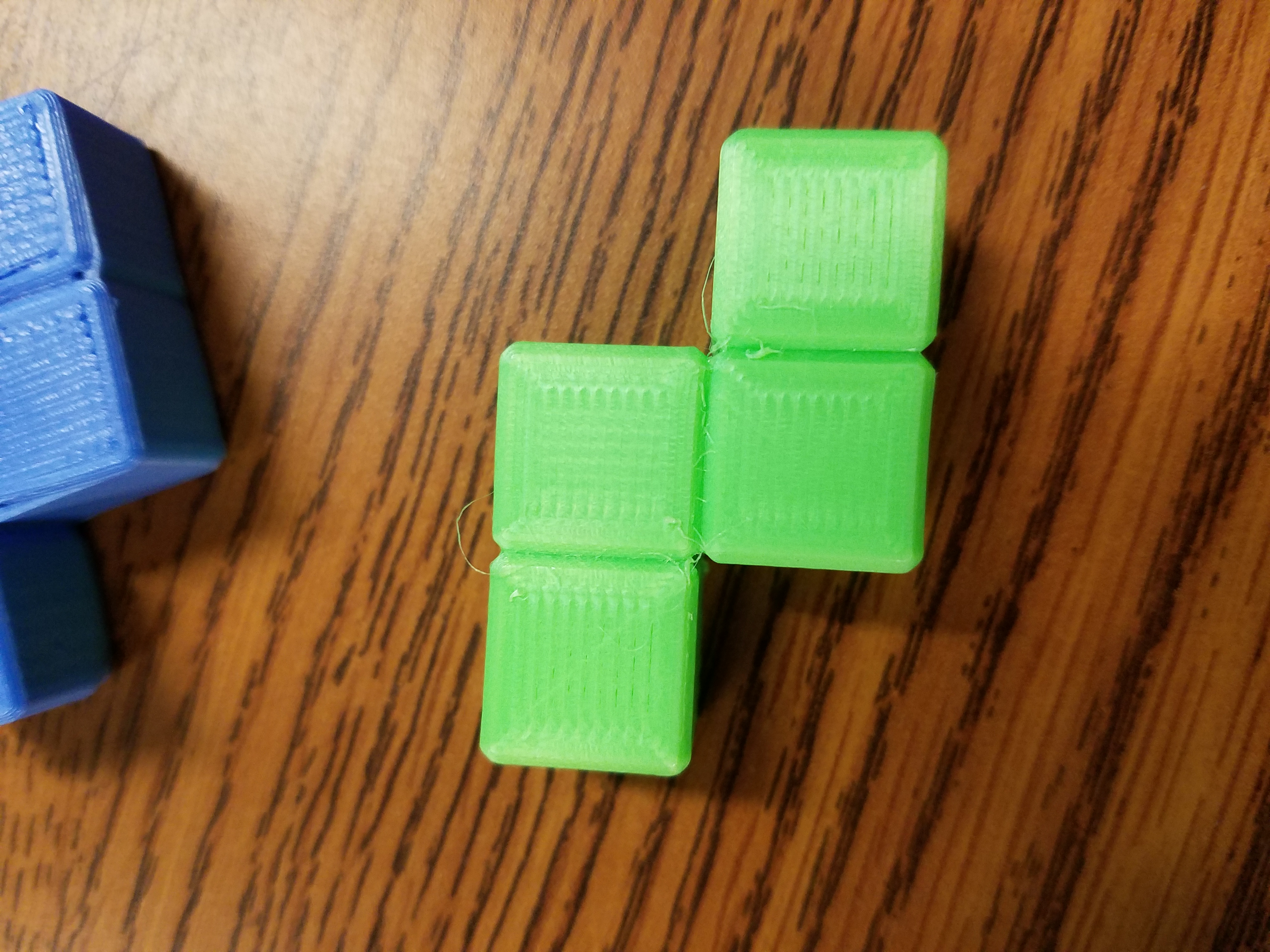 I was trying to print some puzzle pieces when I first noticed the problem. All of the green pieces are from my Eris, using the exact same STL, all of the Blue are from my Orion: