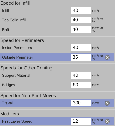 I am using Matter Slice as my slice engine, mostly because it allows me to alter a few more options with infill. Using a pretty standard PLA for the printer.