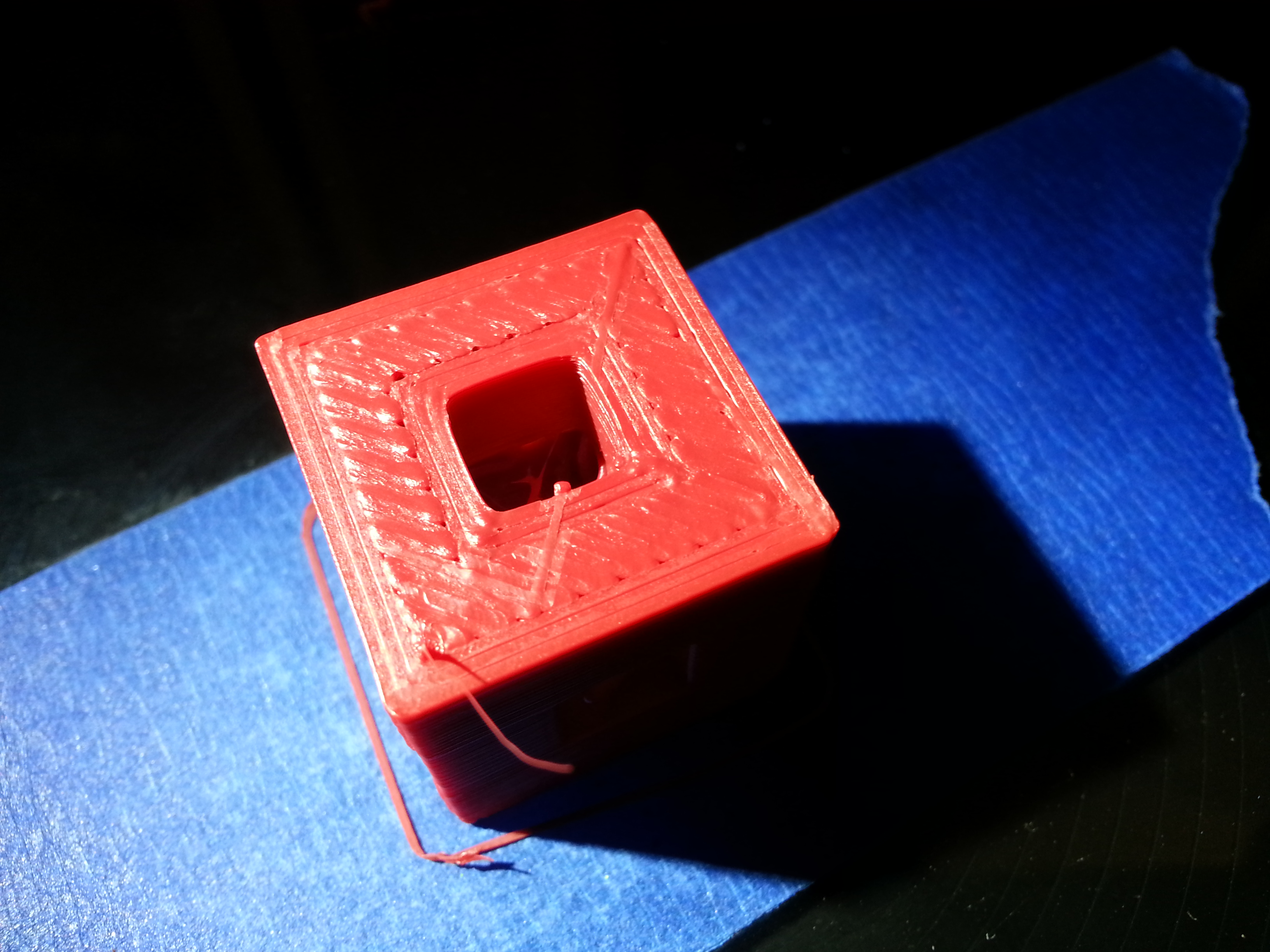 I'm still a long ways from getting really great prints off of it but things are looking promising. The only real snag I ran into was getting my abs plastic to stick to my glass build plate. I tried several different kinds of hair spray, and then tried blue tape, I eventually got one print to kinda sorta stick so I let it finish printing. I will need to investigate this further, and find a more reliable method.