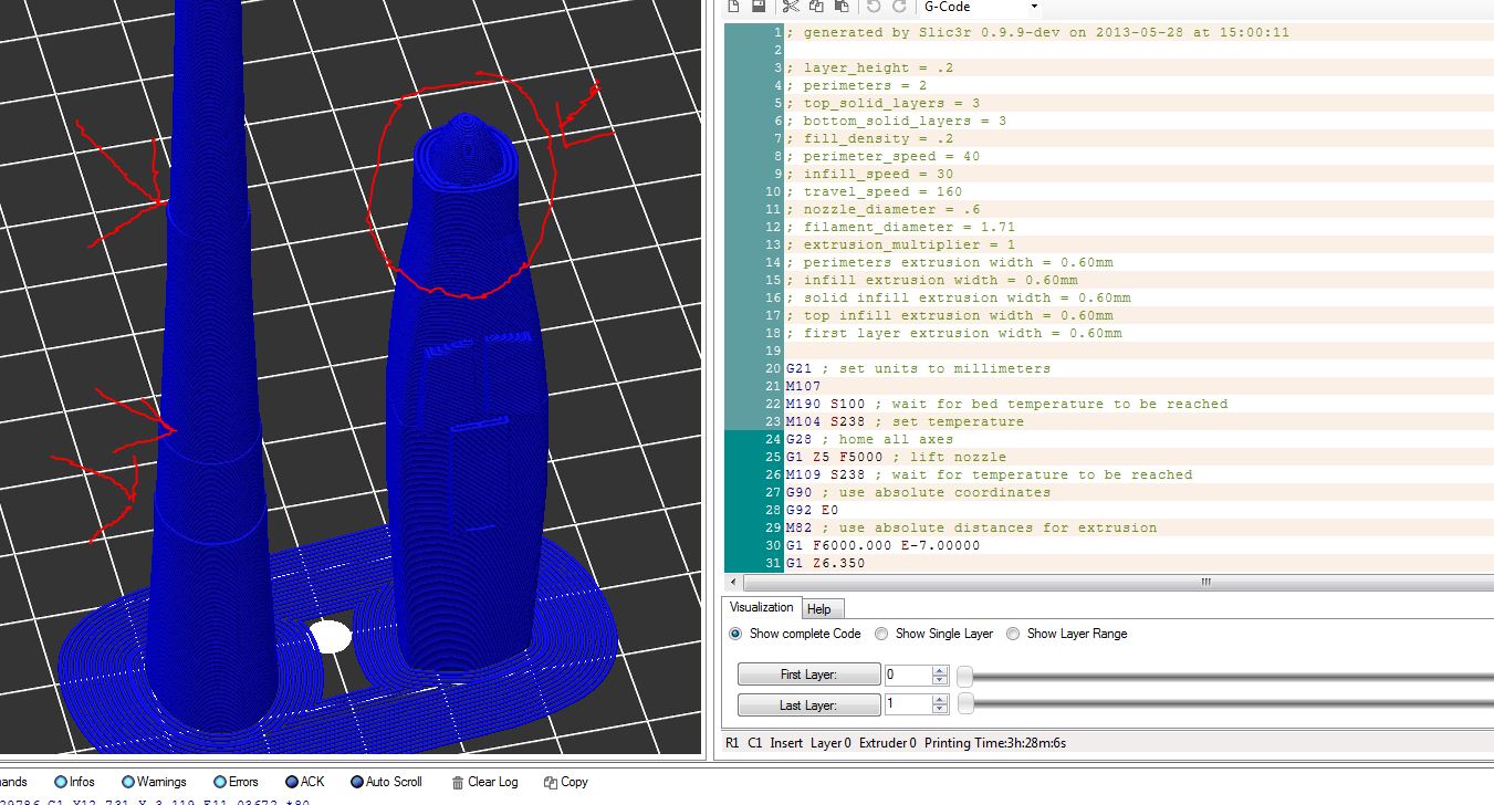 When you load the STL in netfab, does it show any issues?ichiban wrote:yea, I've tried kisslice, and it works better, but I just like the object placement window on slicer better. The problem is really random, and not from the STLs which are generated with solidworks 2013. (i've put them thru netfab and it still generates the same thing. Here's another picture of a very similar print, but very apparent "abnormalities"
