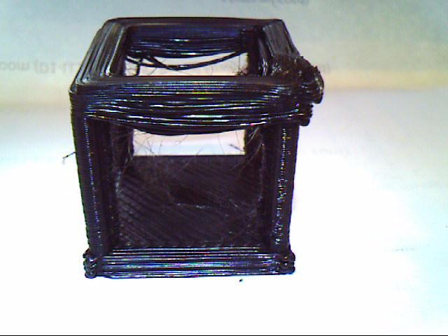 I am running the hollow cube right now and have had a few surprising results. After the statements on A axis tuning speeds, I sped all of my axis up till stalling (huge offsets in the cube). I then lowered them by about 1/3. The results are much better. My A axis has a velocity of 1600 at the moment, IIUC this is a retraction speed of 26mm/sec. It is definitely moving. I am getting no stringing to speak of. The columns are straight though the infamous blob (though very small) is still affecting the the NE & NW corners (columns in this case). I also noticed on my first print of this cube my bridging speeds were also too slow due to my maximum velocity setting within Mach. Hopefully my new tuning will allow faster bridging and less sag. My present attainable speeds should be right in the 100mm/sec range. I am also finding the only way I get good adhesion to the bed and uniformity is to run a single "post it note" (.04mm-.06mm) for clearance. This gets the seemingly correct amount of squish into the filament. Other's experiences in nozzle heights of the bed at start up would be great.