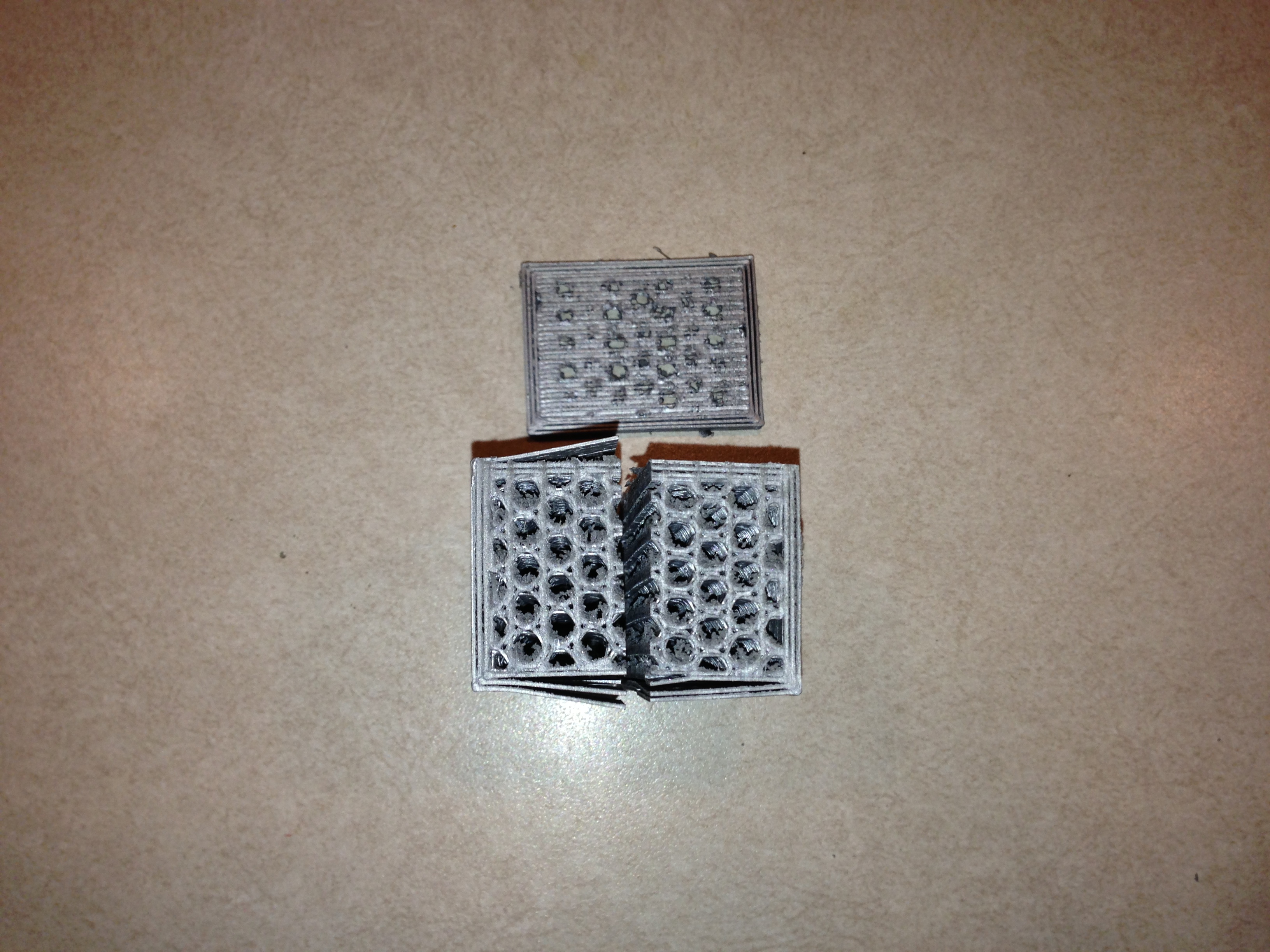 Ok so I did another albeit shorter version of the calibration tower from the first post. As you can see I no longer have any issues with perimeter adhesion or layer consistency, however I still have a major problem when it comes to crossing over the honeycomb infill. Thoughts???