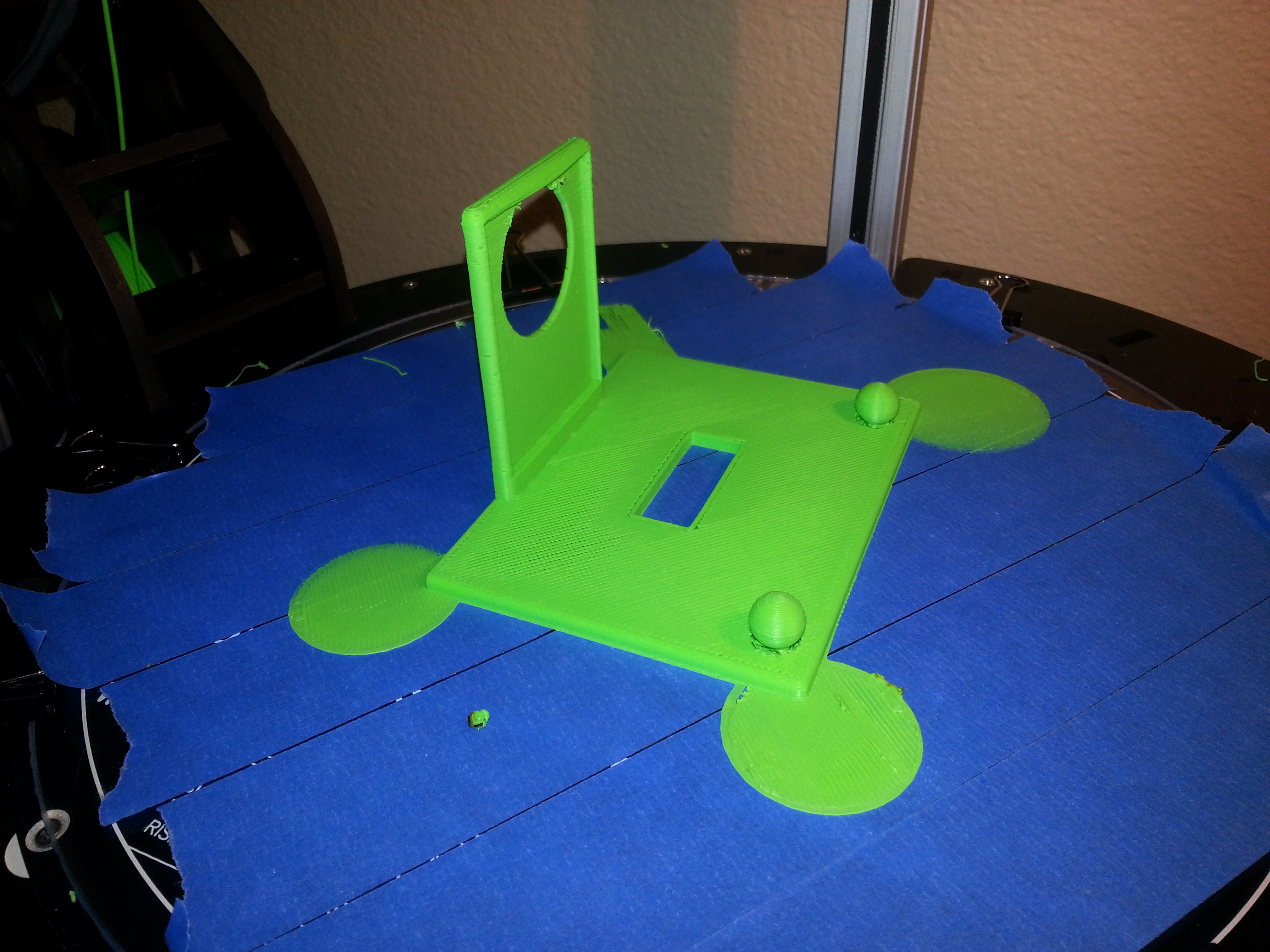 PLA is very well behaved on the print surface. With heated glass you don't need any tape or hair spray. To get a piece off you can just torque it (requires less torque than ABS), or wait for the plate to cool a few tens of degrees, and it will just lift off with little or no force. It never curls up - once it sticks to the glass, it's just there. I'm printing ABS at the moment, but only beause the stock hotend sucks for PLA. As soon as I get the Budaschnozzle mount stuff printed, I'll be using that, and probably go back to PLA.JohnStack wrote:I can't wait to try it! Just about ready for PLA, then Nylon...of course a few repraps in between! Thanks for all the feedback!