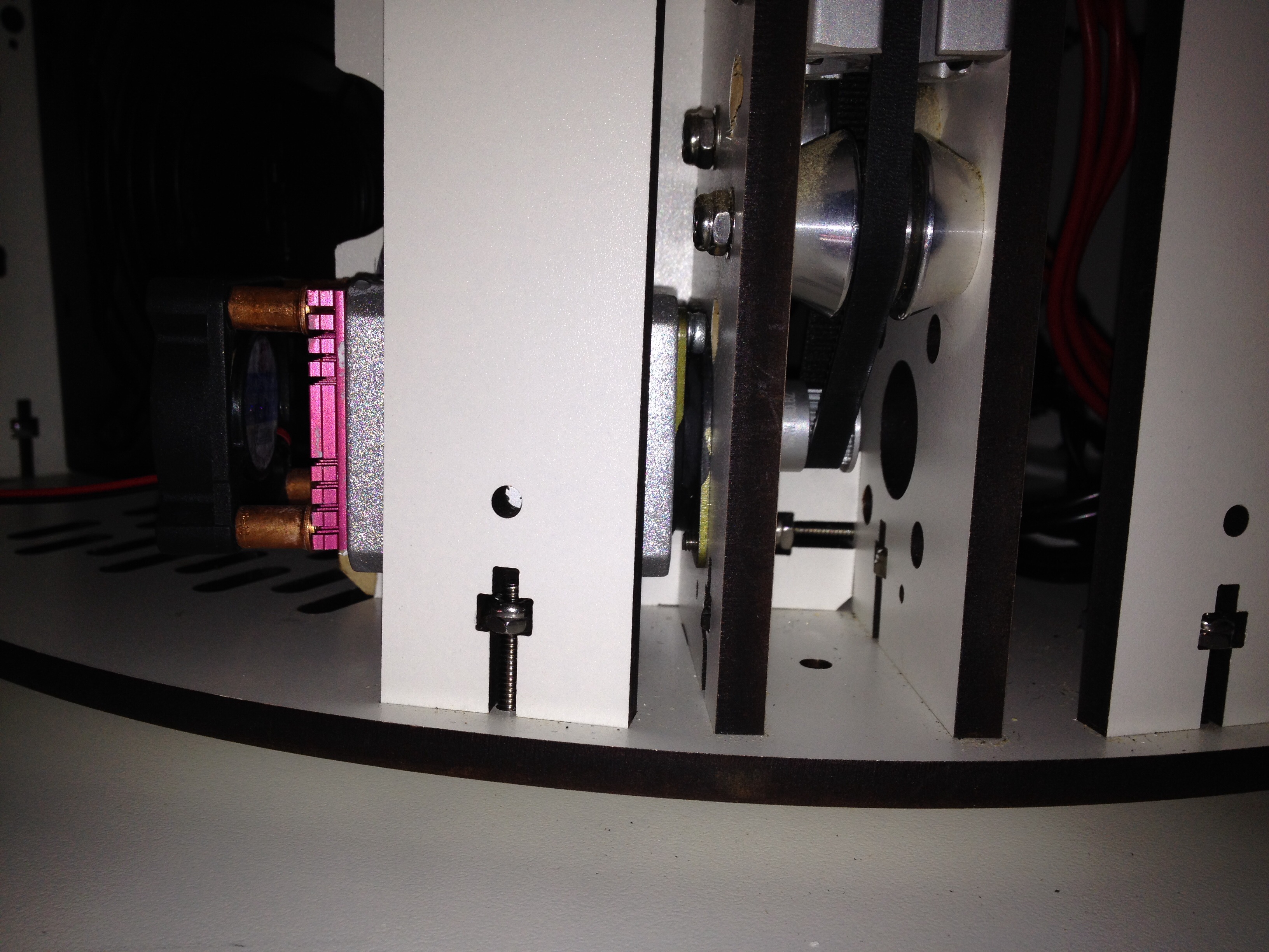 A lot of mods in this picture. The best one is my added support to the frame of the rostock. I noticed it was not too sturdy and questioned it. So I built these which are pretty adjustable to where it really helps me align my towers. With this and the adjustable aluminum bed things are pretty accurate all the way up. I Printed and installed the belt tension set shared on this forum. Installed a centrifugal fan with a carbon filter to eliminate odors. It also can be wired later to do more like control the temps inside.