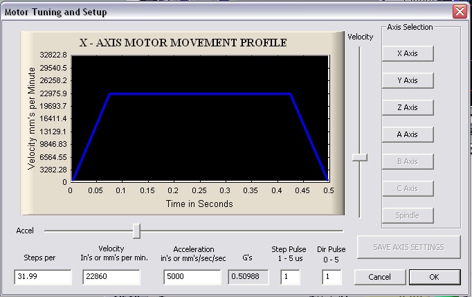 Make sure to setup Mach for Native Units of millimeters. Also, your motor tuning may vary. I am still tweaking my A (extruder) so this one may be off.