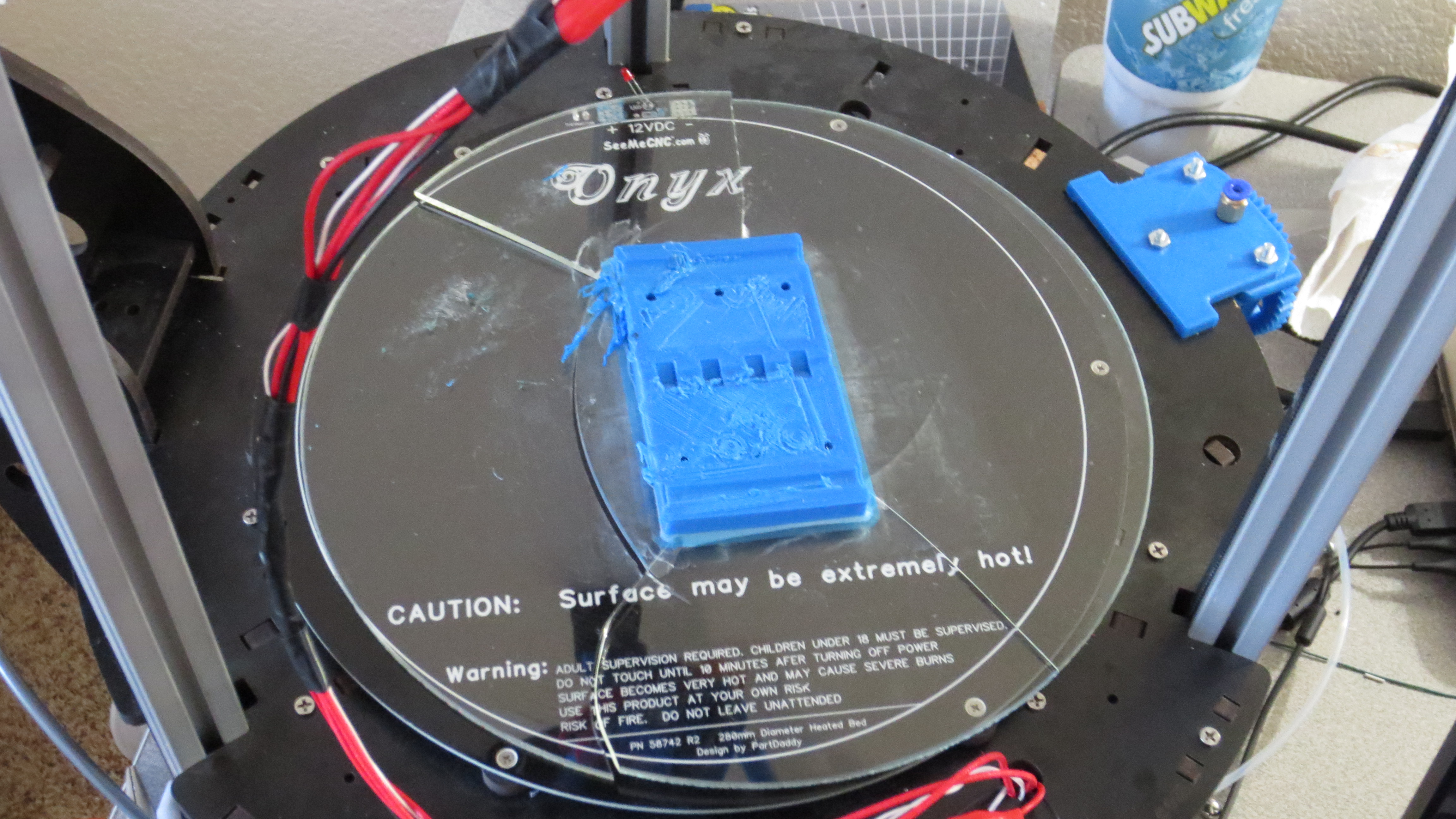 In the mean time I bought a $6 12" mirror from hobby lobby that's just as thick as the borosilicate one. I'll try to get a replacement from seemecnc this week, but this incident makes me wary of printing larger objects on 1/8 glass plates. I might try 1/4 or 3/8 next time....