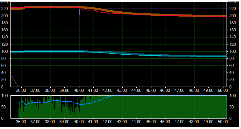 Am I expecting too much from the heating capabilities of the printer? I would have thought that at least the hotend heating element, with two heating resistors would be powerful enough that it would be able to handle the cooling from the fan and still maintain temperature.