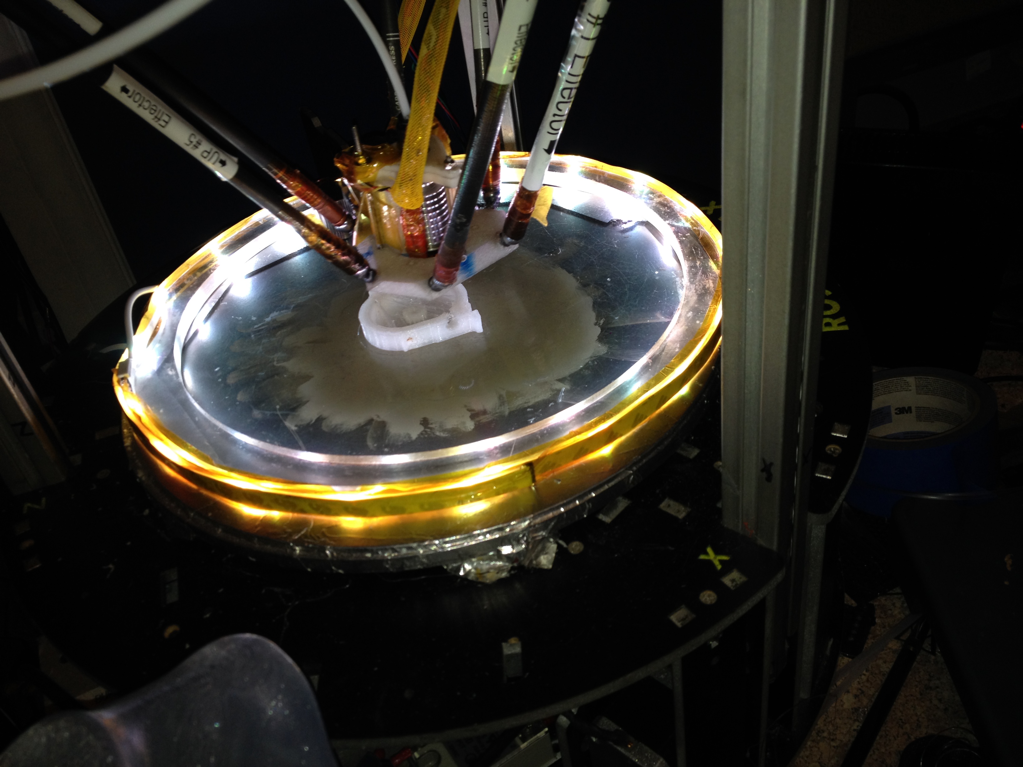 So here is my approach of doing it and it has a few bonus tricks to show for it too. Still working out the kinks, but it is essentially a large clear acrylic ring with a flexible multicolored led ring facing inwards on the outside of it. The effect is that the ring slightly diffuses the ring and also directly focuses the light into the center of the build platform.