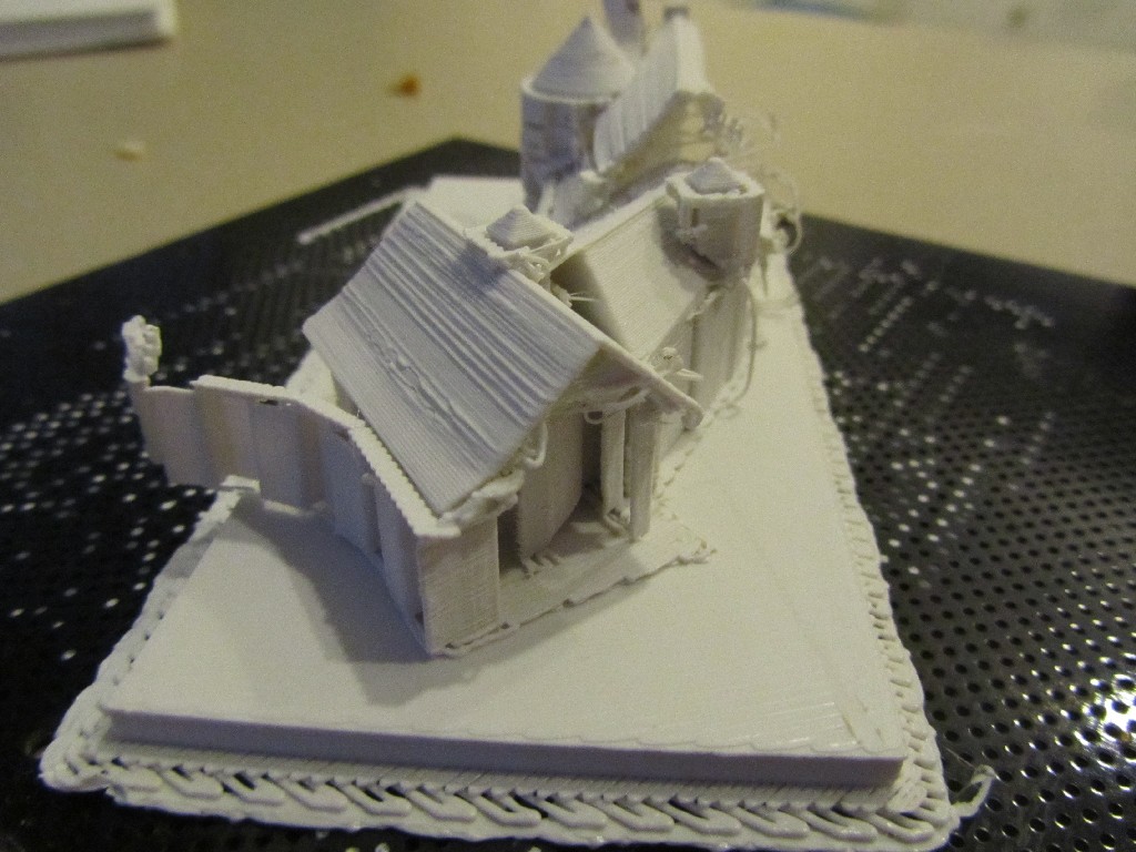 Attached are a few pics of a issue ive been running into lately. These files were originally made with archicad or 3ds max as a OBJ file, then converted into a STL, then ive tried different combinations of using the netfabb cloud, netfabb basic program, and Deskartes 3data Expert to fix the model. The slicing program always shows the model to be ok for the most part after fixing, but it never prints the side walls of the house, only the top. Basically only support material is being printed to support the roof. I just don't get why none of these programs are able to fix the models consistantly. Some models work fine, then others don't. Also I attached one pic of a model that printed great! One such converted STL in question is attached.