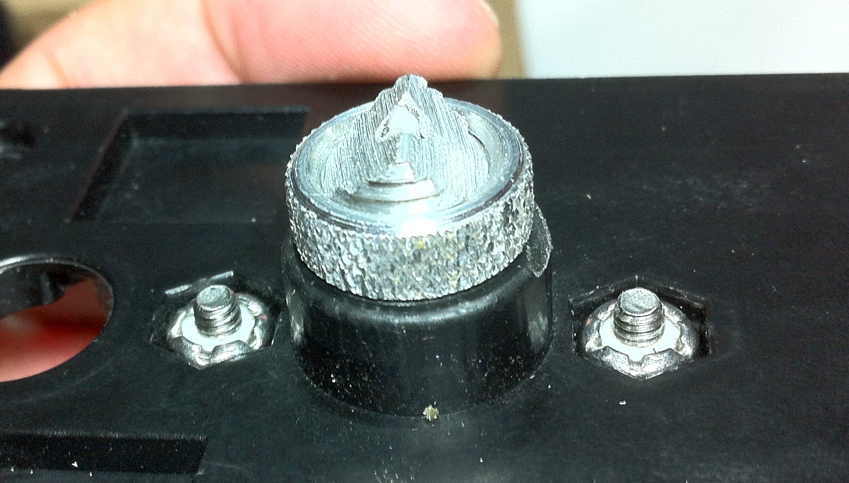 I basically took this idea from Brian, I ground down the threaded aluminum housing of the extruder to a point (see pics below).