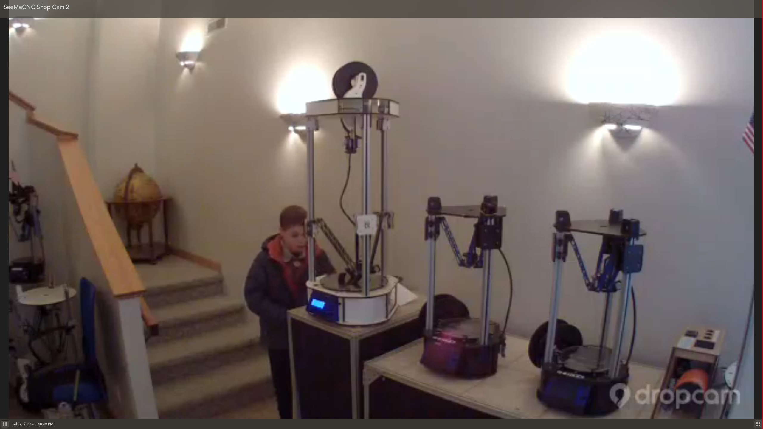 Very cool! I just clicked over to the DropCam to take a look (looks like it's printing the November print challenge). And this kid walks into the picture. The funny thing is that the *first* thing he did was walk up to it and touch one of the spirals being printed