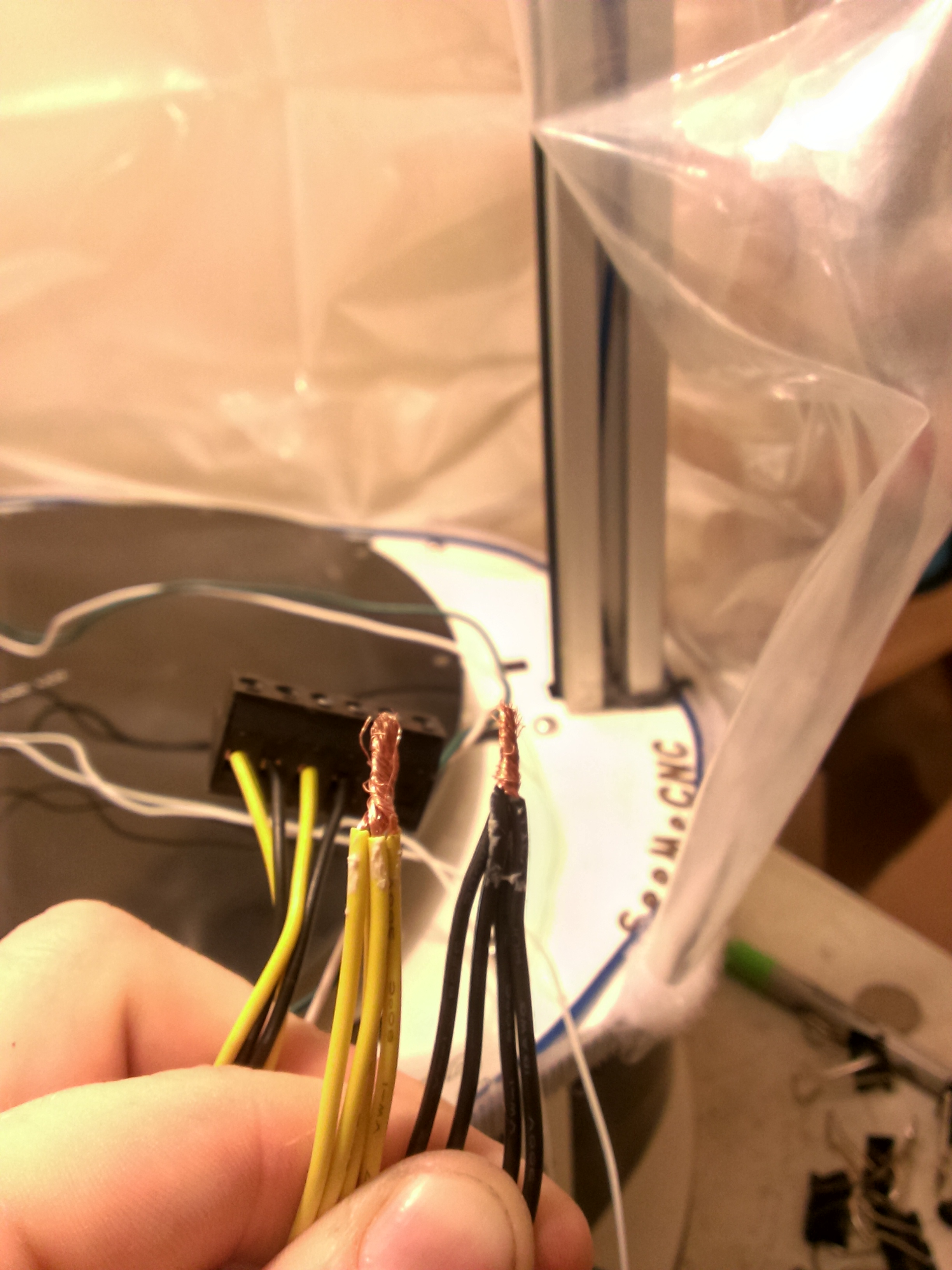 I used GeneB's instructions as per the manual and combined a few of the 12v rail wires in a bundle for the heat bed input, and duct taped them right at their neck to keep them tidy, you can sorta see this in the right-hand side of the very last photo I posted.