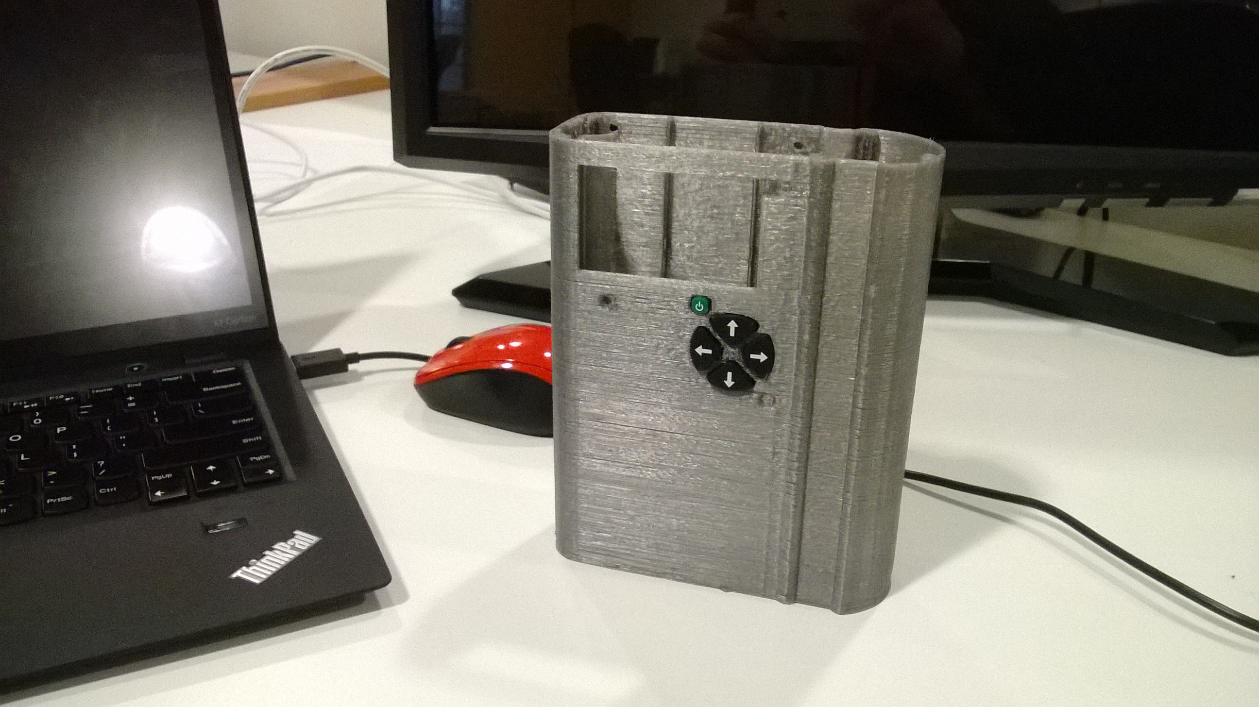 1) FYI, that brown object being printed is a Stiffener. The PLA enclosure was just for development. We had the actual enclosures extruded out of aluminum. The guy in our shop tried to cut the features (holes for screen, keys, etc.) but the aluminum was too thin and bent. So I was asked to print this stiffener to place inside the extrusion which worked great for the guy in our shop. ...Kindof a cool use of a PLA model IMHO (my bosses idea).