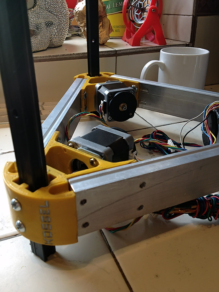 I have my Kossel nicely calibrated - seat level movement across the build platform. I've done a few test prints with mixed results all related to filament starving. When the filament flowed though, the print surface quality was ver nice. Long story short, my ezStruder is not generating enough force. I have a Kyson 1124090 stepper - the same as I used on the towers and also they are tried and true by the RepRapers. If I disconnect the Bowden and extrude say 50mm, I can easily make the stepper skip without a lot of effort. I just did this test on one of my Rostock ezStruders and I couldn't stop the filament for love nor money! I checked my config file for the smoothie board and gamma_current is set at 1.5amps. I'm running my Rostock from repeater firmware and RAMBo with a current setting of 230 (which is about 1.35A).