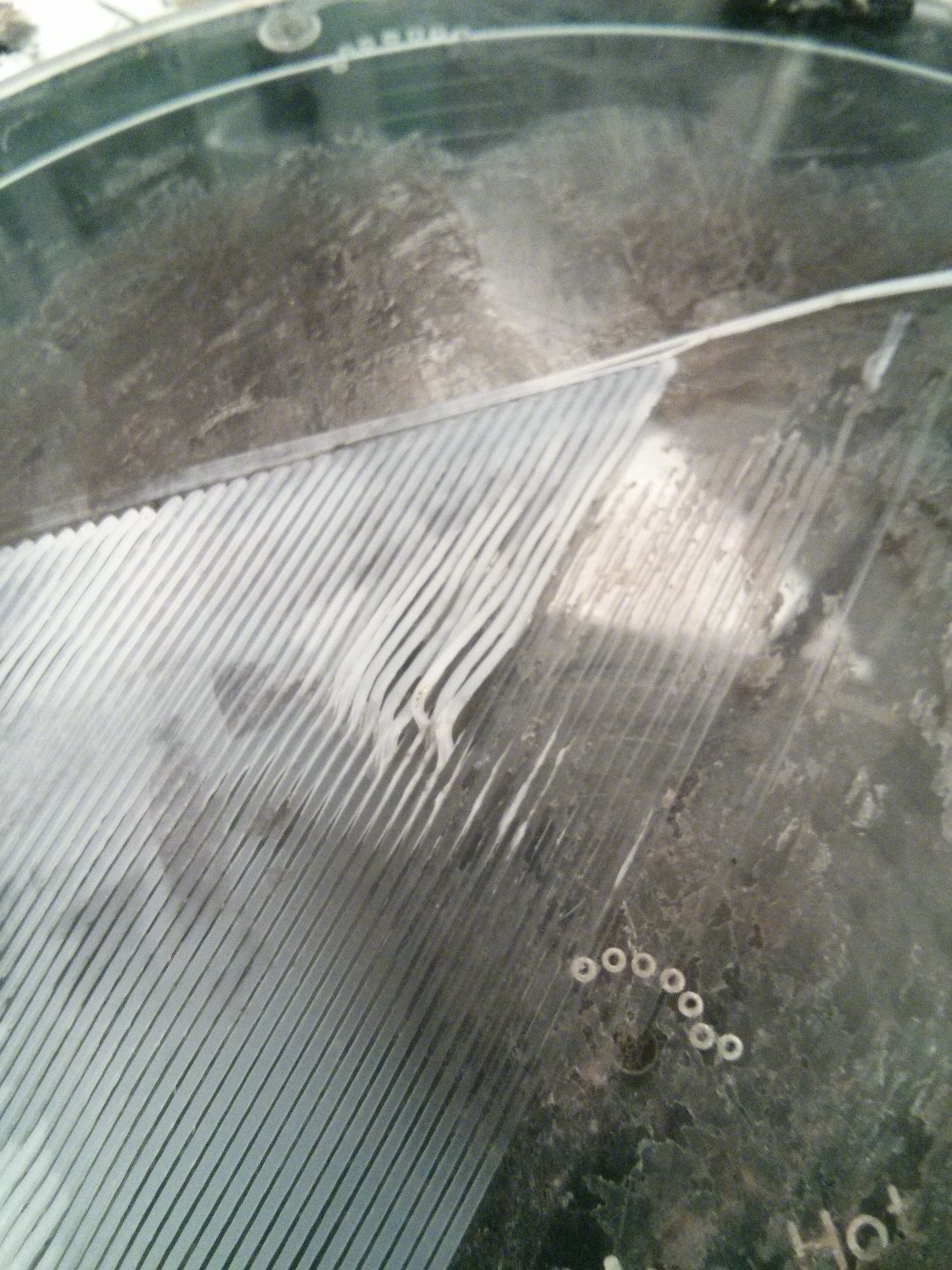 I'm having tons of problems with calibrating the ORION. I've attached a photo of the problem. The printer struggles to create straight lines parallel with the glass plate. Basically it begins travelling higher than the plate and slowly lowers as it travels farther down, eventually hitting the plate and dragging across it. Then it turns around to do the next line and does the same thing: starts at a Z that is slightly too high, only to lower and begin dragging on the plate.