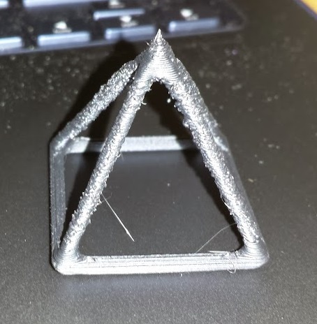 Here I tried to print a calibration pyramid. As you can see it is very messy. Not sure how to clean it up any suggestions would be awesome. I printed it with the hotend at 135C.