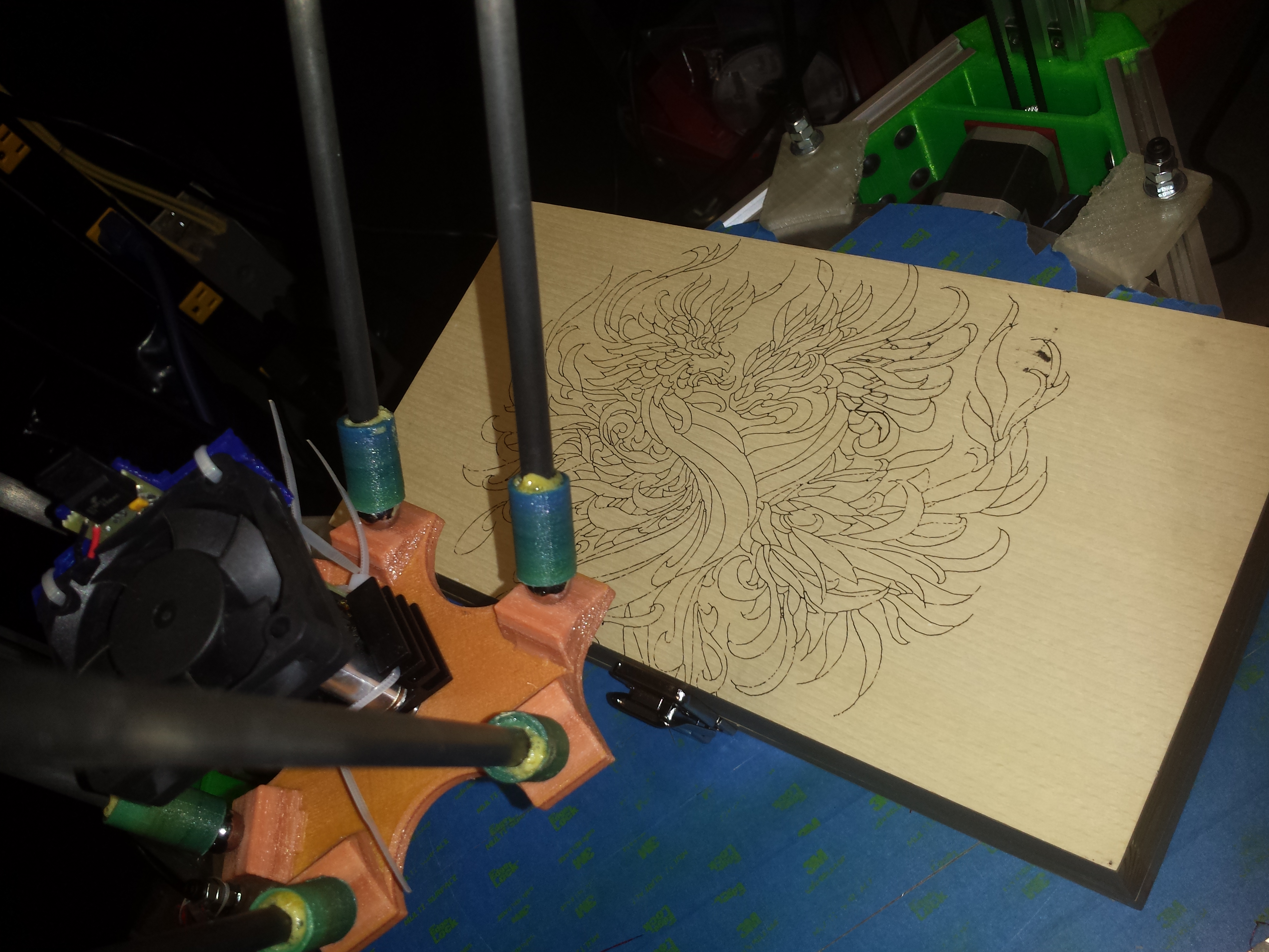 sherpa_chris wrote:I couldn't even get the laser to come on or turn off at the right time let alone during move operations. It always came on or turned off well before it was supposed to. Today I realized that I had an old version of Marlin in my RepRap that did not support the M400 dwell command. I re-flashed the Arduino with an updated version and now the basic on-off function works great. So far I've just left the laser on the entire time, using a move speed of 130mm to zip across the target while I get to next burn point. This poor man's method leaves a small discoloration but it will have to make do until I can figure the out the on-off-during-moves thing. I use Slicr3 which does not use G0 and to my knowledge, Marlin treats a G0 like a G1 anyway. I'll have to take a look at Bubbasnow's code but it looks like it takes advantage of a Z height change during a move. My machine does not do that so I'll need another hook.