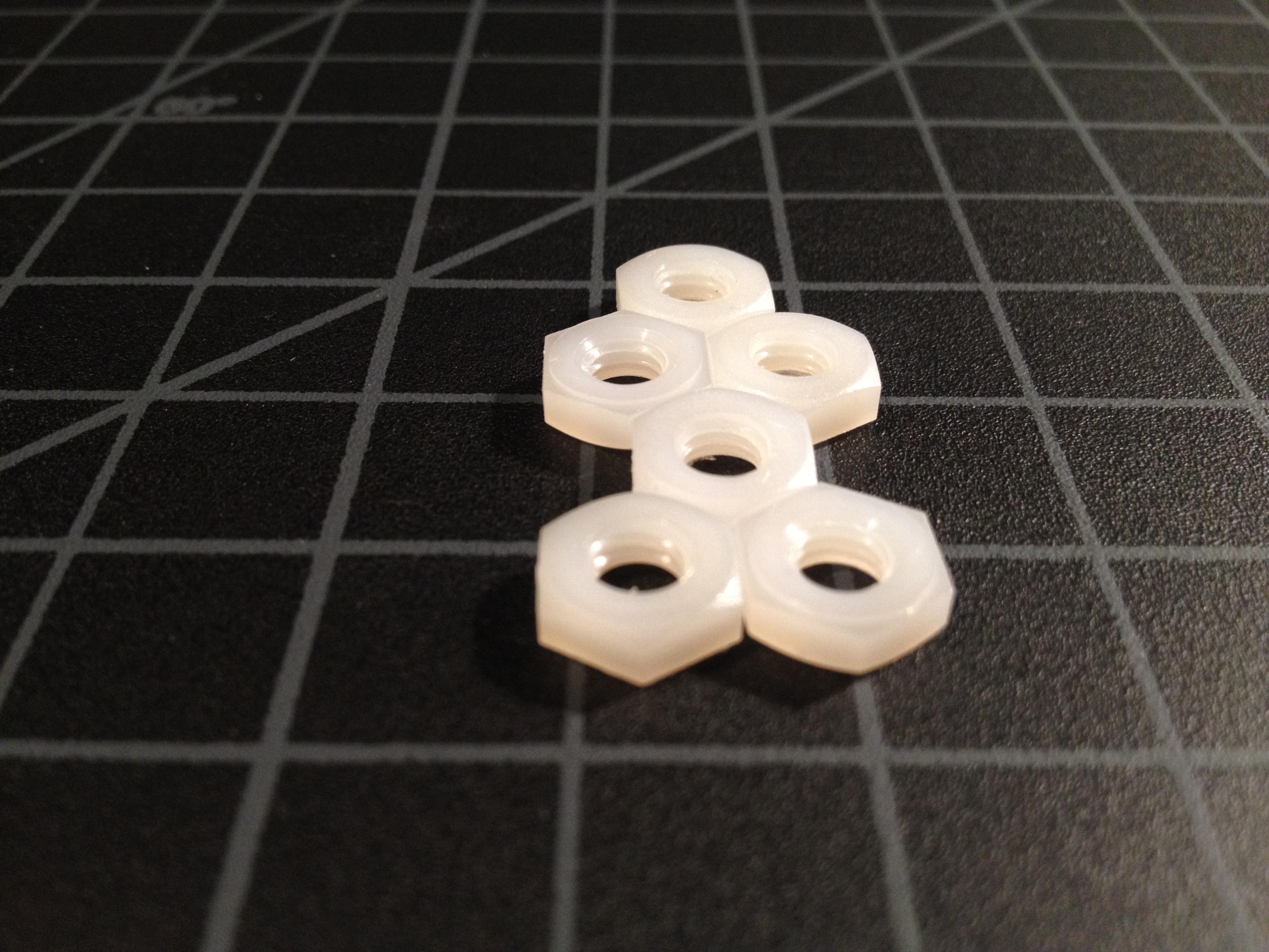 Russ and Mac the Knife, thanks for the tips on the effector fasteners. I'm aware that the nuts are hard to use on the bottom. I have a hard time changing that arrangement though. My OCD and previous experience from the avaition field tell me to never install a fastener upside down. If the nut comes loose, the screw falls out, there is no longer anything holding the piece in place. If the screw is in the top, the nut can fall free and the effector will still be somewhat in place. I will use some needle nosed pliers or something to hold the nut in place. I've installed some finicky hardware into some ridiculous places (inside of a motorcycle exhaust pipe, for example... heh) so I think I might be able to manage the odd nut placement.