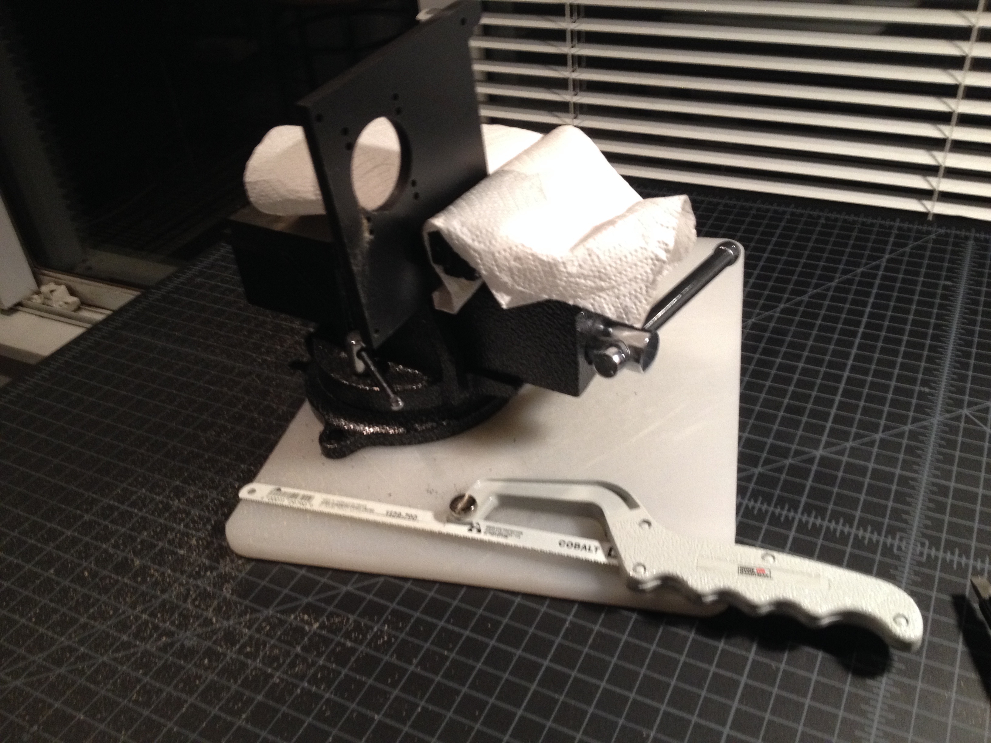 I have the hot end standing up in a vice with paper towel to protect the aluminum. I would never put a blade to that beautiful SeeMeCNC box! I will treasure it and use it to hold something cool. (I love small boxes/cases/bottles/containers that can be re-used.)