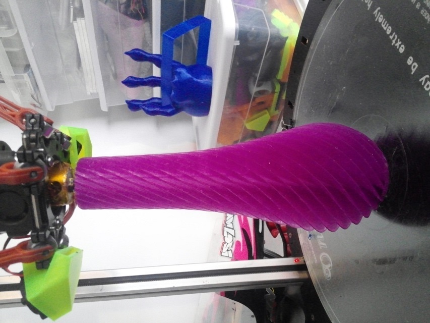 hi sorry i should have put that, no support the photo on the printer is fresh, the design is quite well with the layers that it didn't need it as it spirals it holds together well.BenTheRighteous wrote:Wow! Did you print those fins with or without support? That looks great!