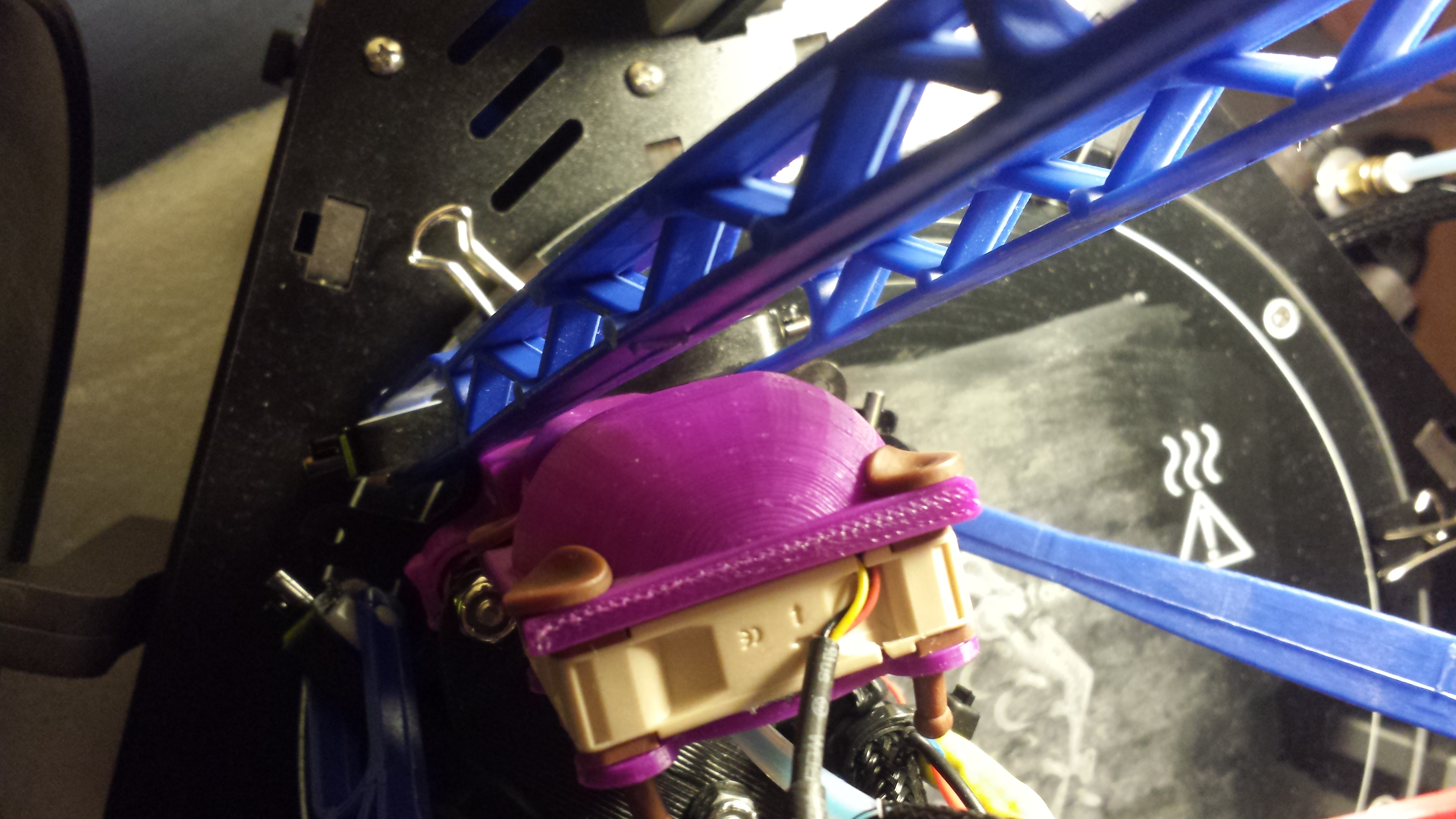 but you can see that the arms will catch the Fan tops at the outer limits of the print area. So I ended up doing this in ABS (3X Printed Washers, 1X Printed Modified Adaptor Plate, 1X 40mm Fan Ducting, 1X Printed Fan Grille Cover) Mid Print of my Spare: My first Prototype was a tad too big and thick walled: