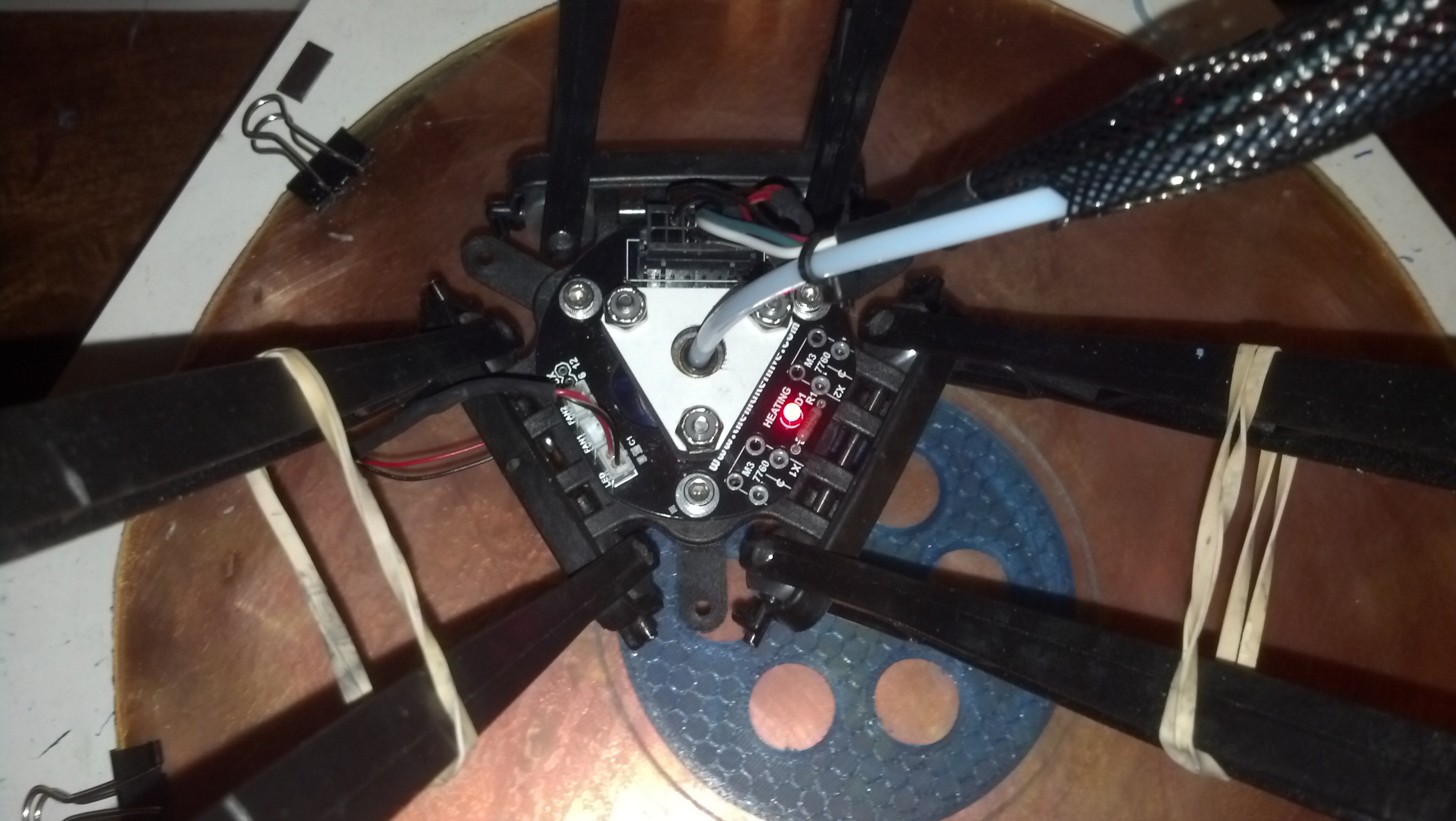 Hey NiteWatchman, what's that look like from below? I'm curious how much clearance there is through the hole in the effector platform. I actually thought that it wouldn't clear the heater wires and thermistor connector so I've never tried it.