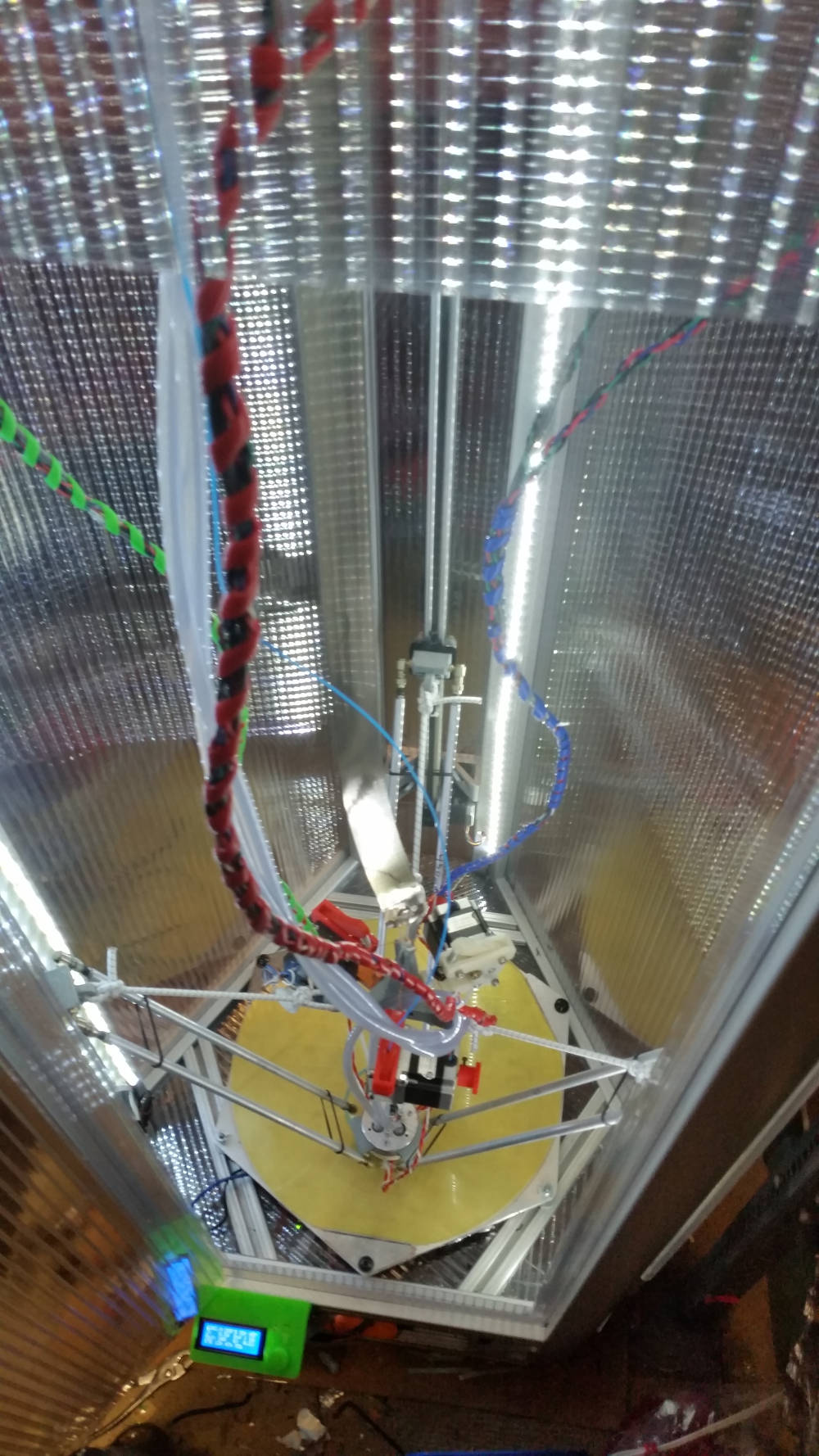 So after plenty of time with my two delta printers (RostockMAX v1 and SpiderBot) I felt the need for a bigger one. Having designed my own replacements parts for most of the machine (other than the frame) I decided to go for my own design from scratch because its more fun that way. My goals were big, rigid, accurate with a chamber, and not too crazy expensive, or heavy on custom manufacturing. I like 8020 but didn't know of good options for 60 degree corners until I found 40-4096... At this size I don't trust plastic vertices.