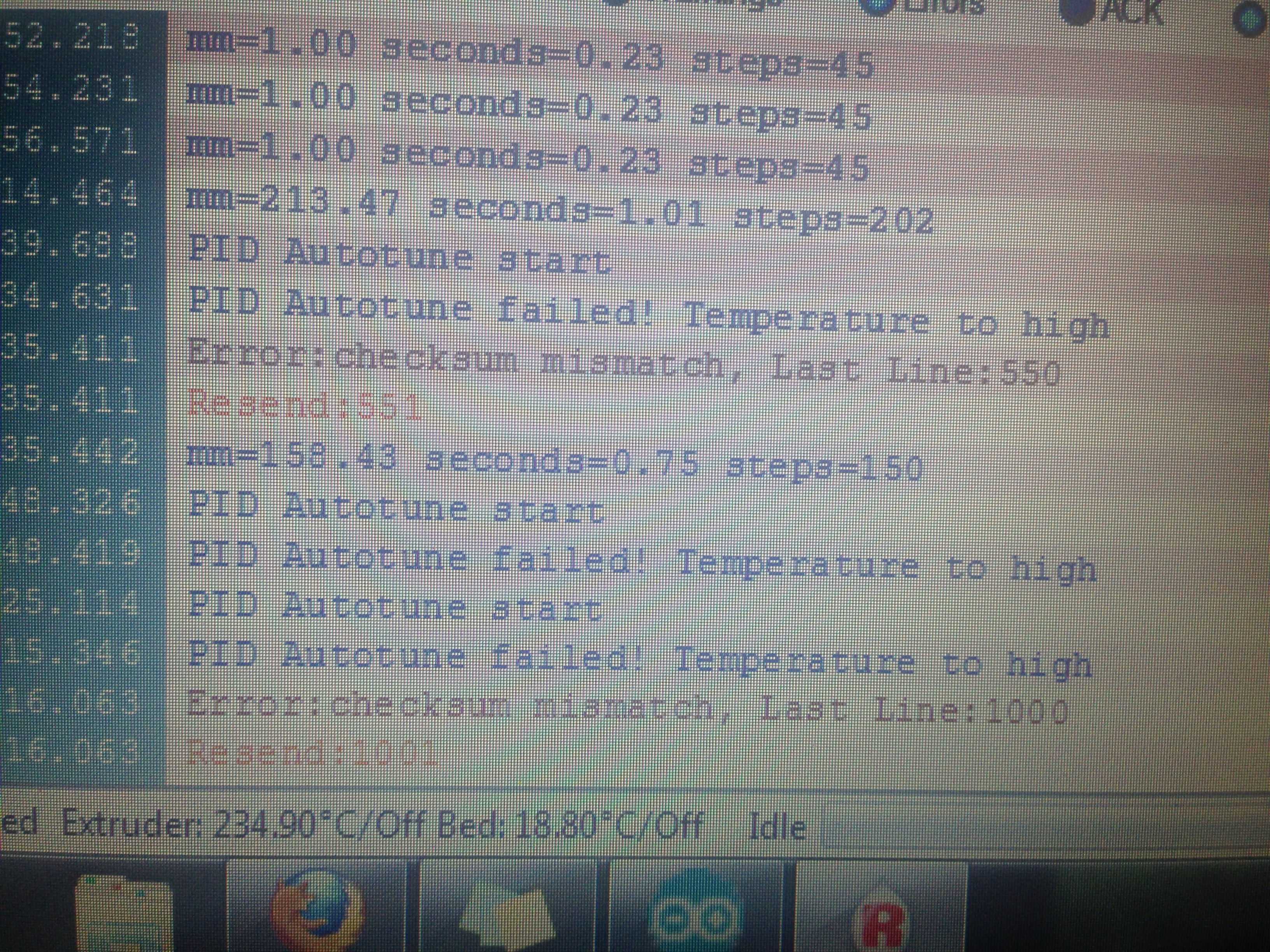 It shows you hotend at 235*. Did you heat it up before you tried to do the test? I believe in the instructions geneb wrote, it says the hotend must be at room temp before starting the test.