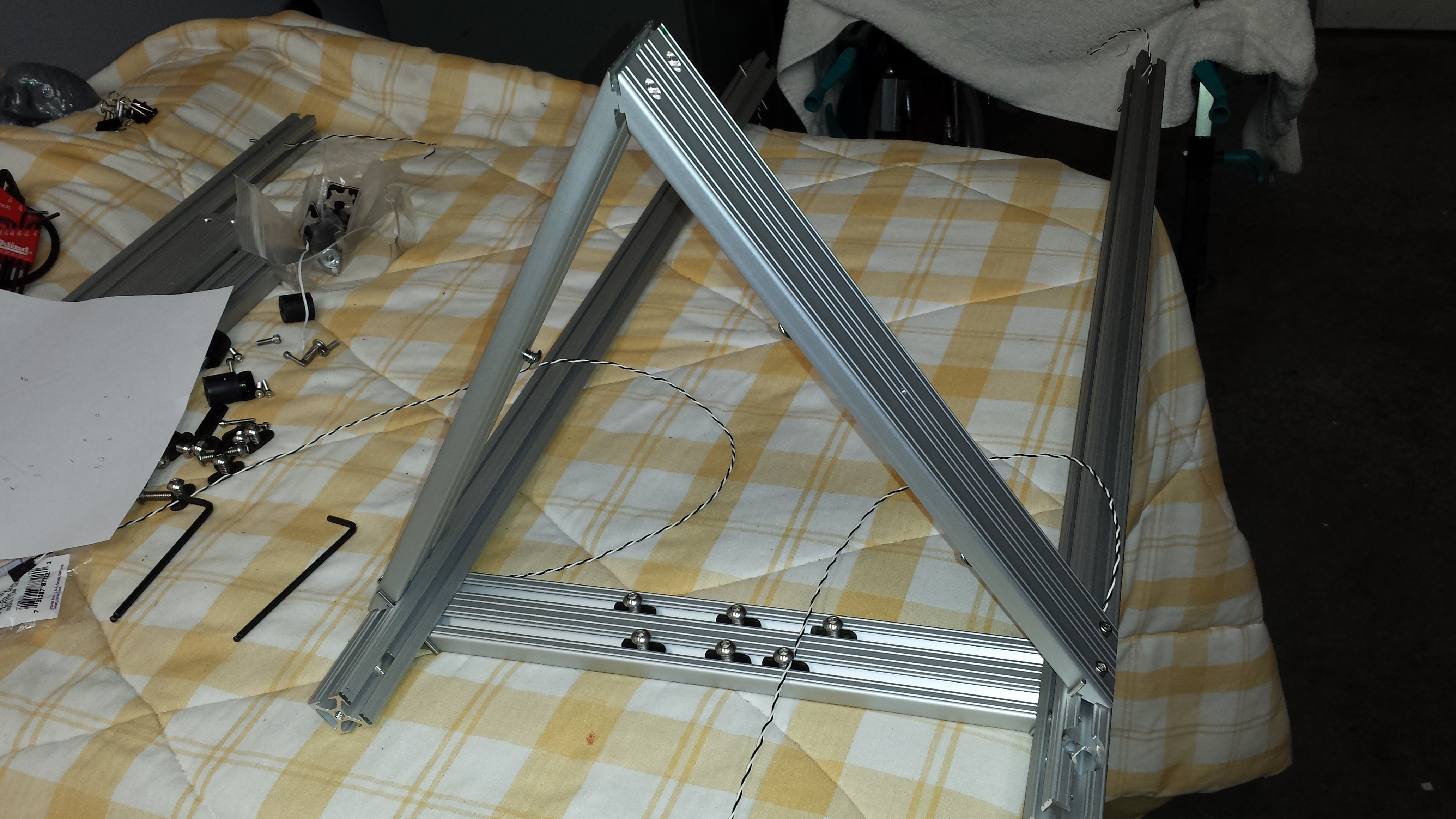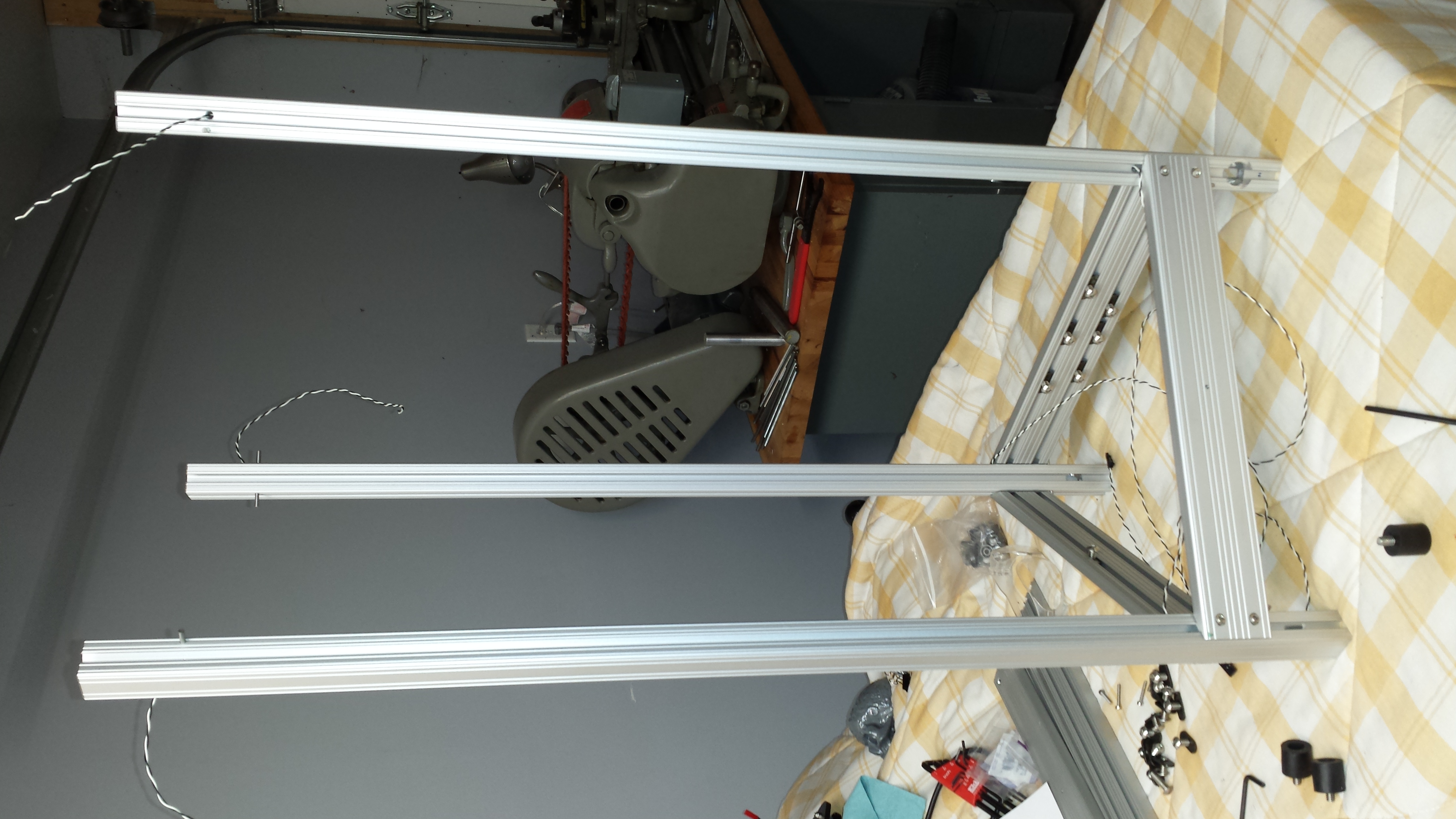 Bottom horizontals and verticals together, but not snugged up tight. I should receive the idler brackets today if the post-lady does not deliver my parts to the next street over again and will resume the build.