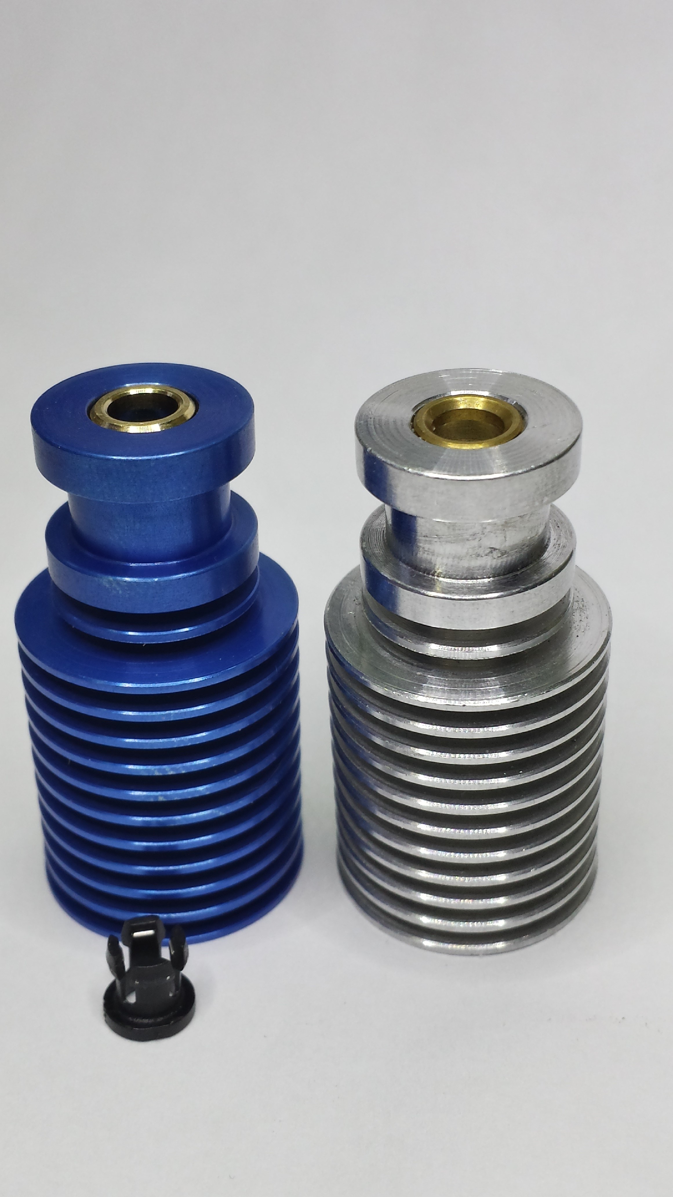 So the E3d V6 heatsink anodize test was a 100% success! I will be doing a few limited runs of these and heater blocks in the coming weeks. I also will be looking into the Chimera and Cyclops heatsinks and possibly heater blocks. BUT these must be new units as the brass fittings in the stock mounts can not be anodized. I source these direct from E3D without their brass fittings installed and install the fittings after I anodize.