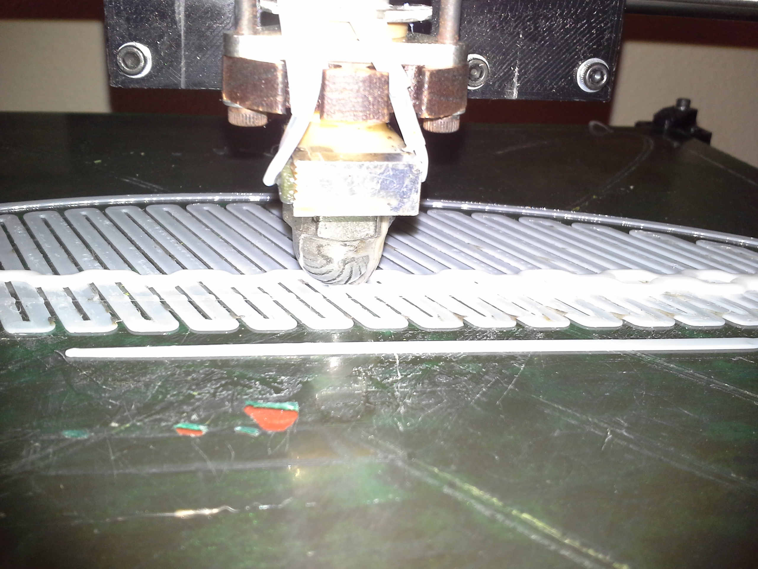 The lulzbot taz 3 comes with a nifty little nozzle that actually allows one to make custom sizes for it using 80 cent 10mm cap nuts from the hardware store. I tried printing t glase using a .4, .5 and .8 mm nozzle but I couldn't get around the problems of the multiple walls causing cloudiness - so what did I do?