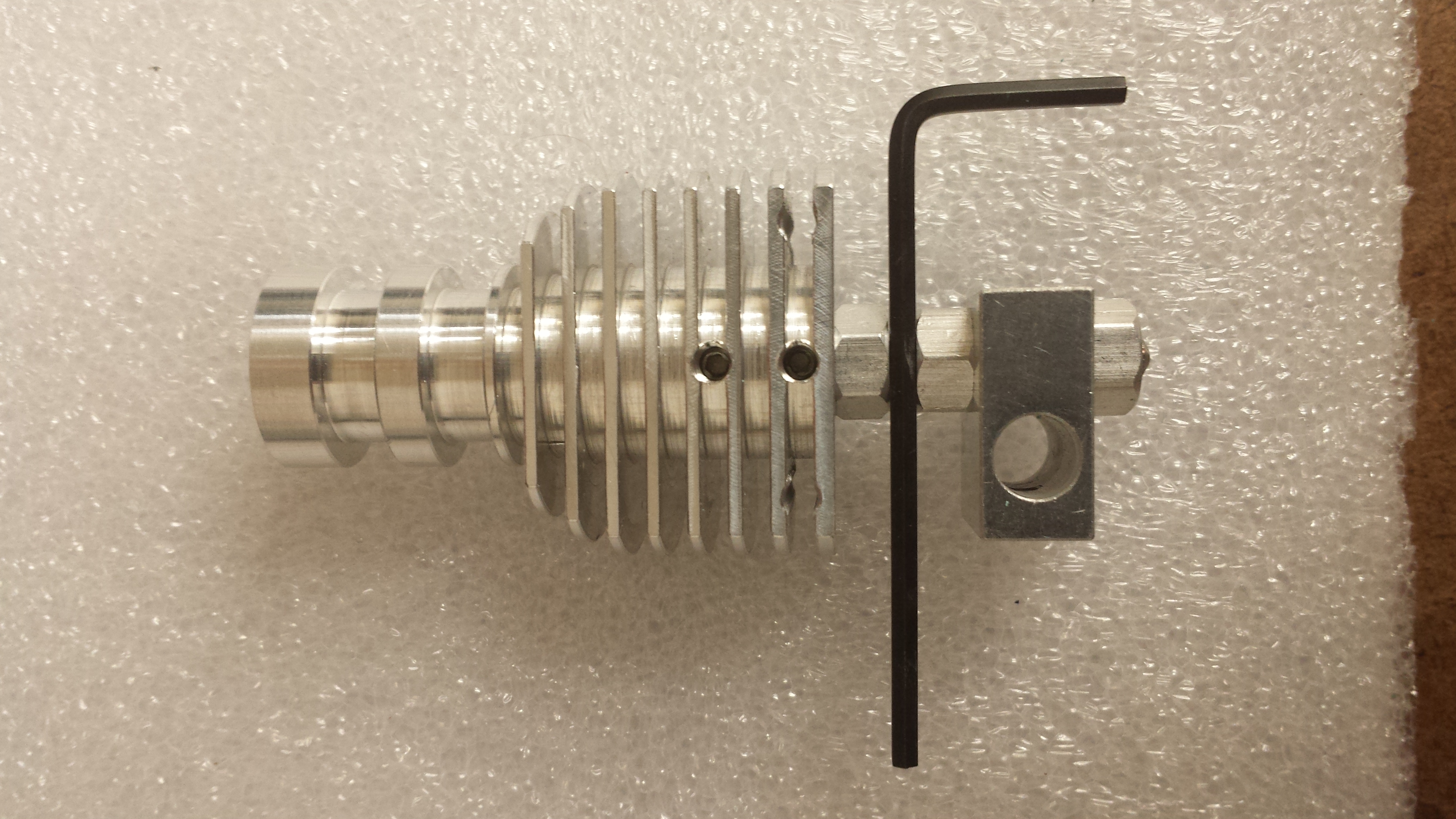 When building a v2 this way, be careful not to tighten the top set screw too much or you risk crushing the entry of the barrel. Having used a jam nut against the heat sink, the set screws can be omitted it desired.