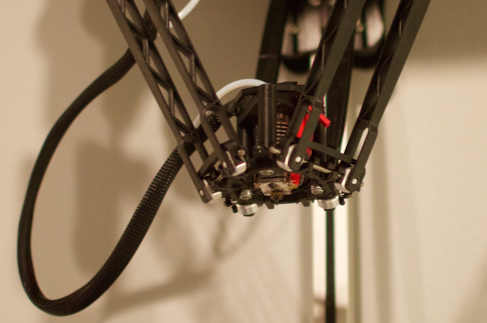 I got my Rostock Max v2 at Maker Faire Bay Area 2014 and never actually got around to sharing my setup, so here are some photos featuring my printer in all its glory: